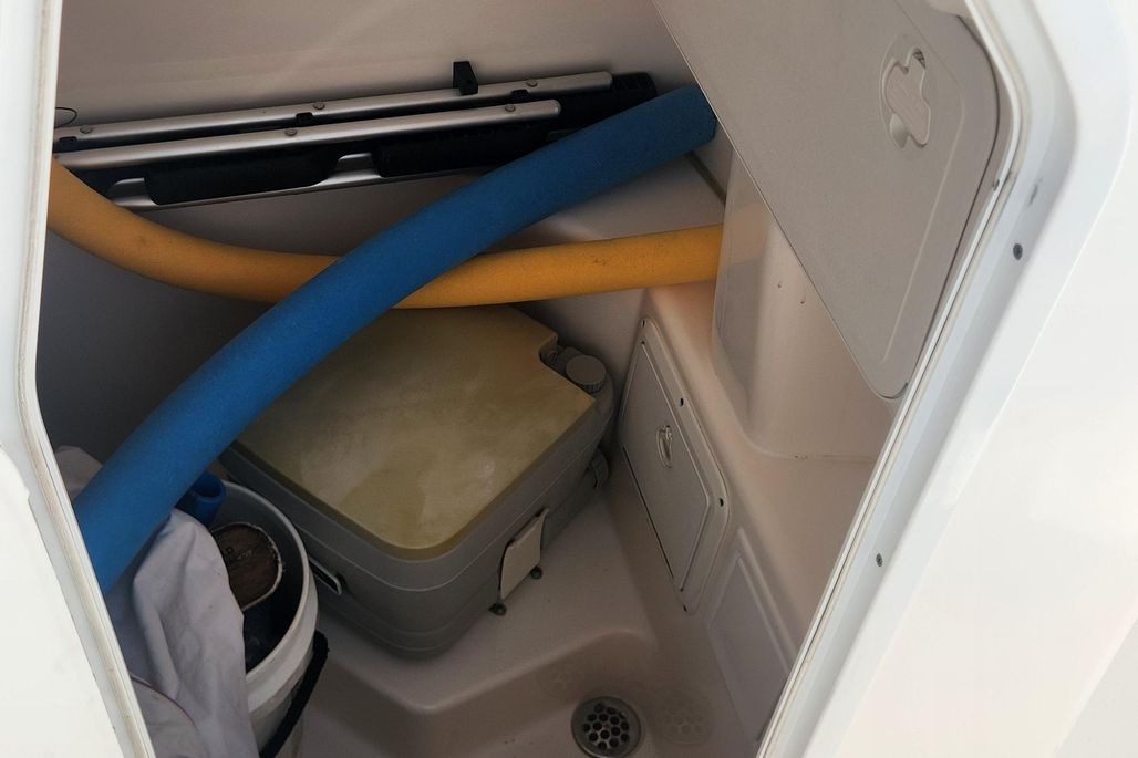 - Fishing Amenities: Includes multiple rod holders, a 27-gallon illuminated livewell, a 60-gallon fish box, and raw water washdown.