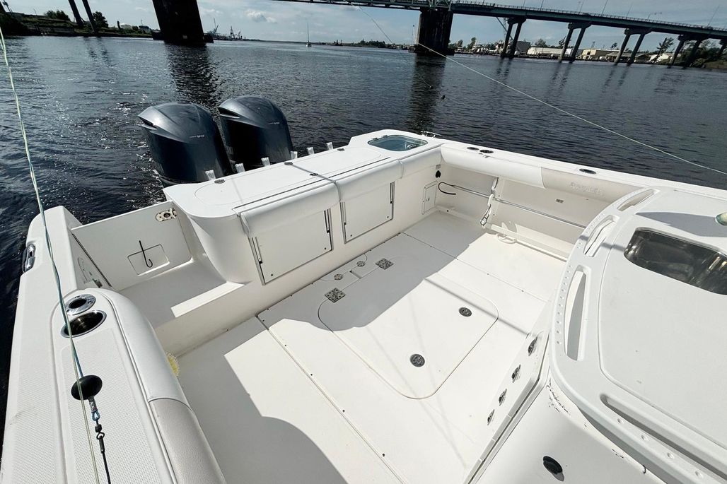Introducing the 2012 Everglades 325 Center Console, a remarkable vessel designed for both performance and comfort. With an overall length of 32 feet, this boat boasts a sleek fiberglass hull that ensures durability and stability on the water. Powered by twin Yamaha 350 horsepower engines, each with 609 hours of operation, it delivers impressive speed and reliability, making it perfect for both leisurely cruises and adventurous outings. The boat is equipped with essential features, including a windlass for easy anchoring, enhancing your boating experience. The thoughtful design allows for ample space, making it ideal for entertaining guests or enjoying a day out on the water. This used model combines quality craftsmanship with modern engineering, ensuring you have a dependable and enjoyable boating experience. The Everglades 325 Center Console is ready to create unforgettable memories on the water.