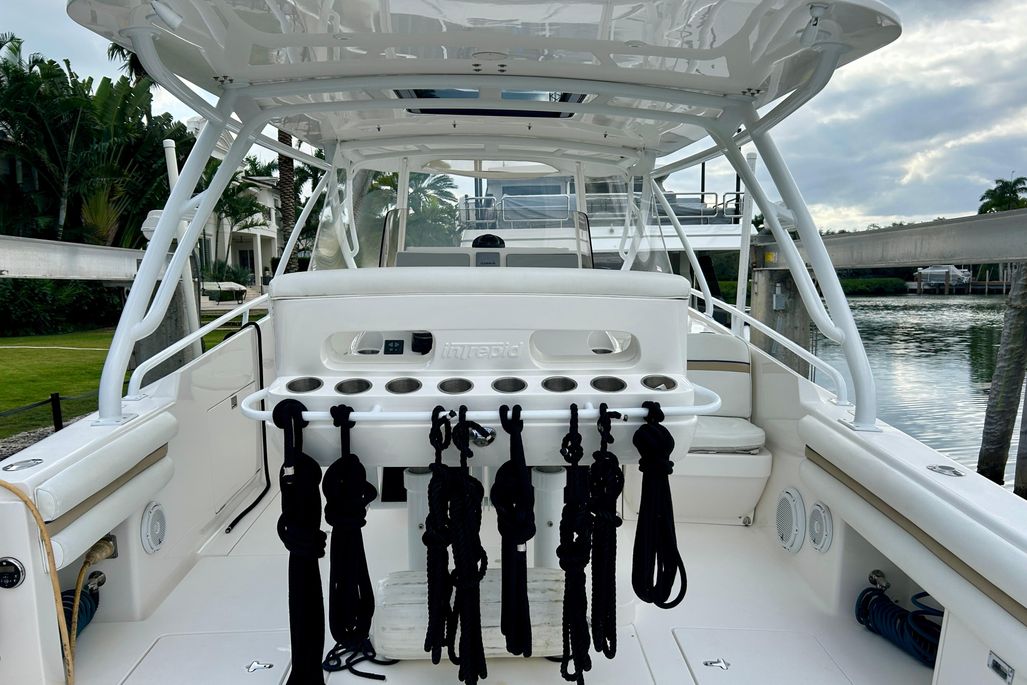 Absolutely pristine, no-expenses-spared Intrepid 400 Cuddy powered by triple Yamaha 350 four-strokes with only 485 original hours. This is the one you’ve been waiting for – captain maintained since new, always lift-kept (no bottom paint), and all services are up to date with records.