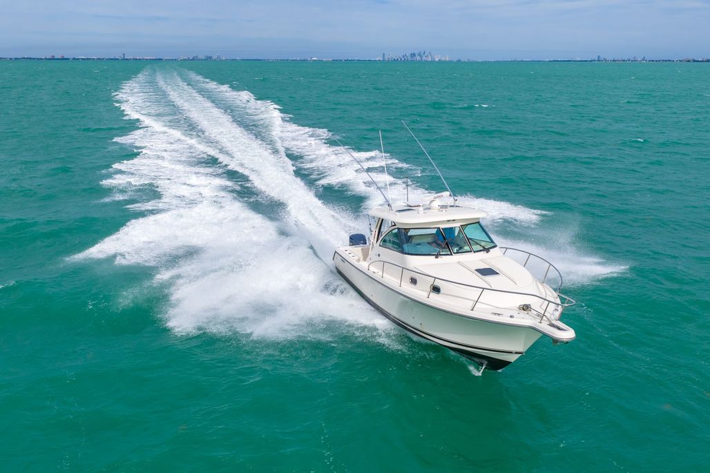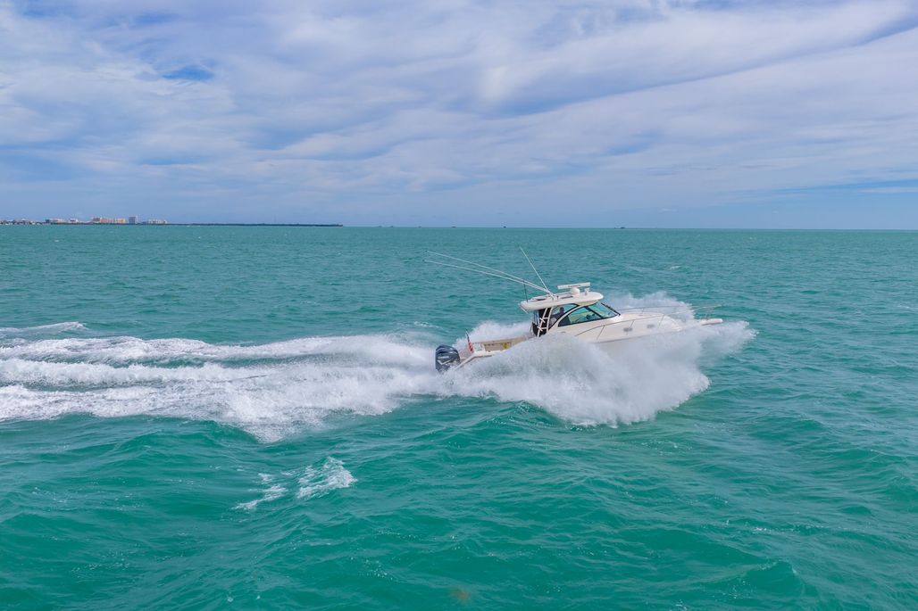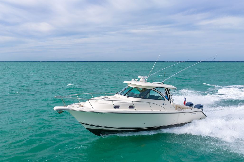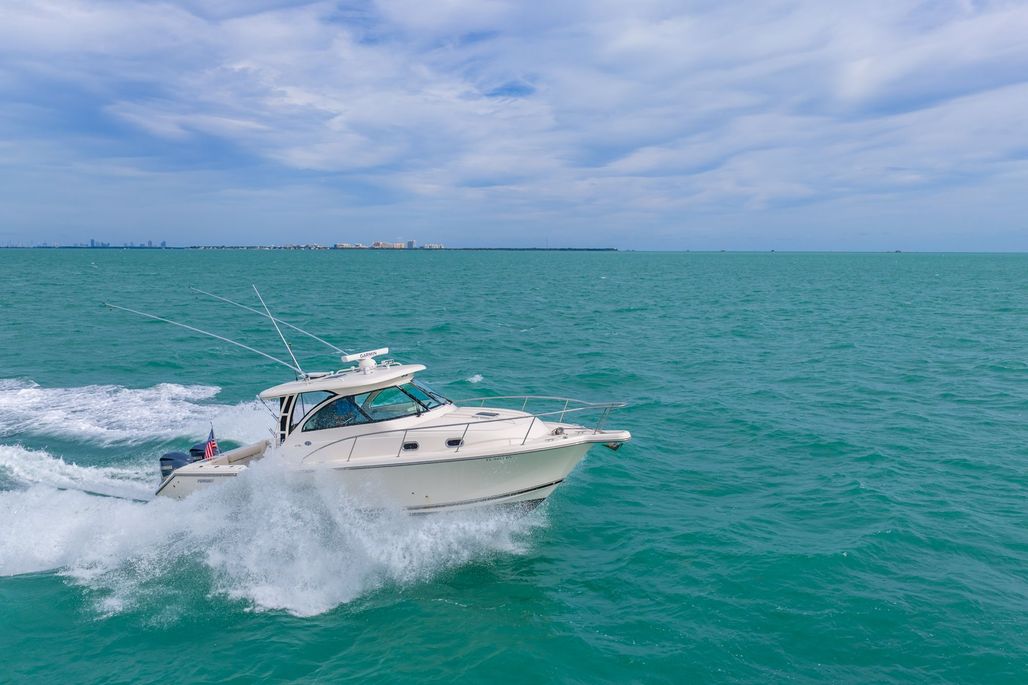 This REPOWERED 2012 Pursuit 345 Offshore with Twin Yamahas WITH WARRANTY may be the cleanest boat in the market. NEW GENERATOR WITH WRRANTY! Seller has taken meticulous care of this boat, with a Yacht Management team on the boat weekly to check the boat all its systems and clean the boat to make sure its always in the best condition. Seller has invested time and money to continue to upgrade the boat and its systems to insure always in the best condition. This model is a beast, with plenty of space both in the helm area as well as aft, you have plenty of room to spend the day with the family at the sandbar or out fishing for the day. The cabin is also very spacious with electric table that converts to a berth plus additional berths for up to 4 adults to sleep comfortably on the boat. Air conditioning in the cabin and the helm make for a comfortable day even on those hot summer days. If you are thinking on making the crossing to Bimini or continue on to the rest of the Bahamas, this boat with get you there safely and comfortable. Check out all the great features on this boat below: