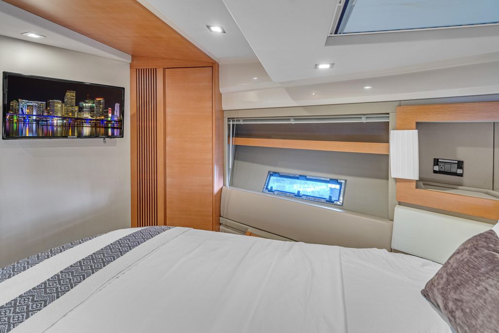 This 2013 Azimut 45 Flybridge is one of the finest examples of her kind on today’s market. Unlike the more common 2-cabin versions, this yacht is equipped with the desirable 3-cabin / 2-head layout, offering far more versatility for families or guests without sacrificing comfort or style.