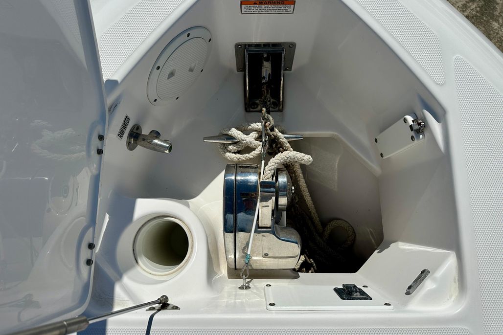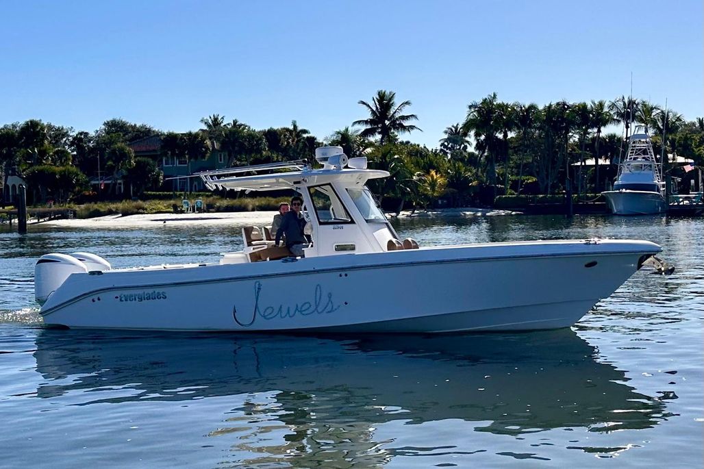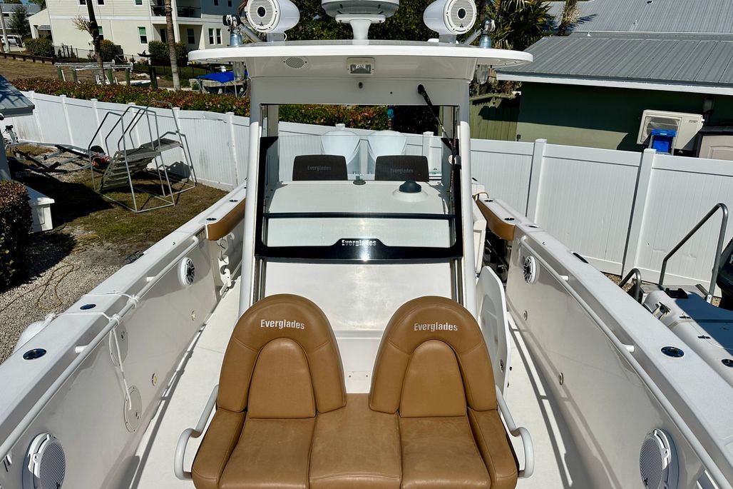 This 325 CC Everglades is in great overall condition. Some key features include Garmin Electronics, Fusion Sound System, Electric Windlass, Taco Outriggers, livewell, forward and aft insulated fishboxes, Electric Windshield, electric high-low bow table, large side-entry door, and more.