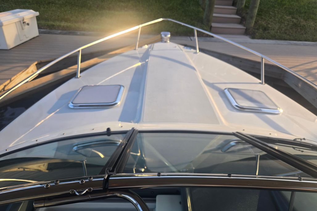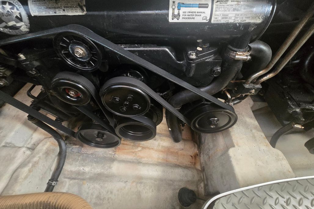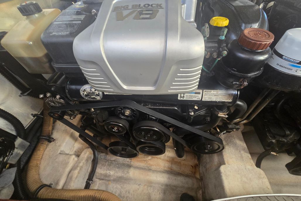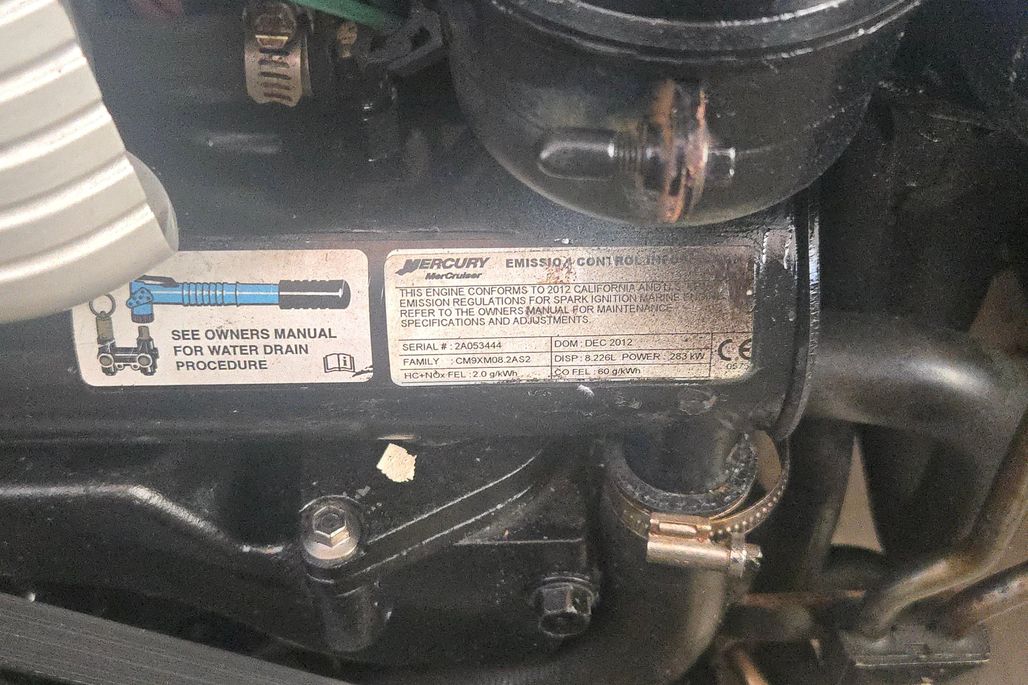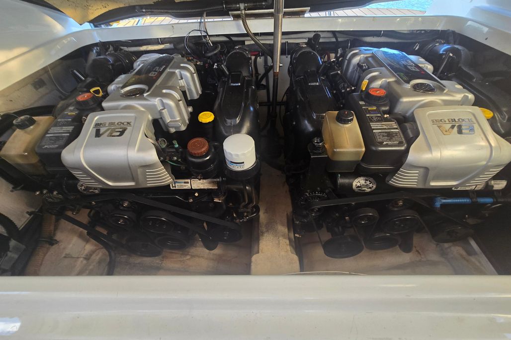 What is unique to this boat is that all the exterior cock pit cushions have been redone. The motors are freshly serviced and purr with 650 hours on the 8.2 MAG. Fresh gelcoat paint was applied in 2024 for the cost of $45,000.