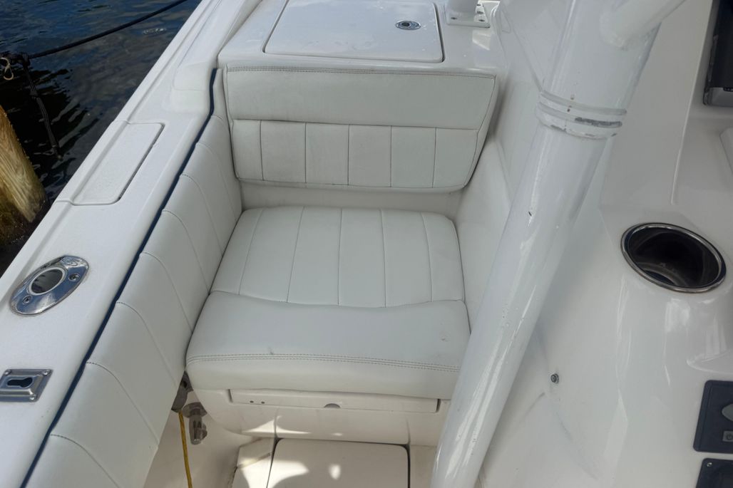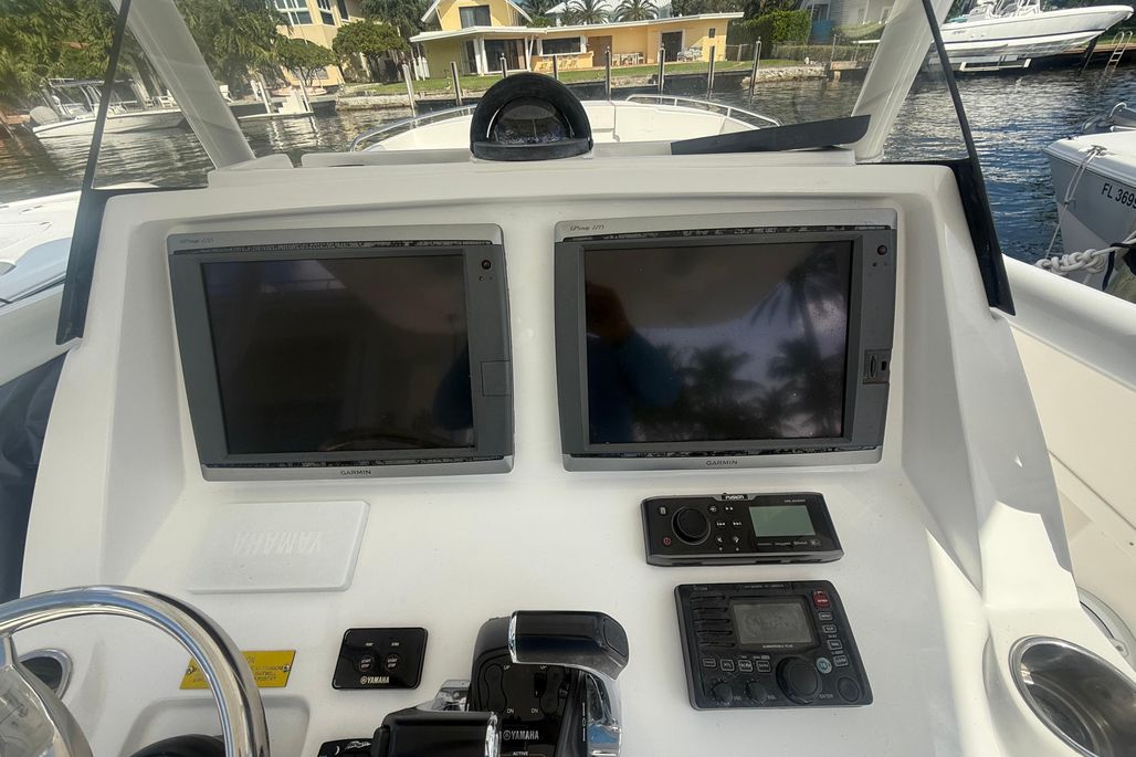 Introducing the 2013 Intrepid 327 Cuddy, a remarkable used vessel that seamlessly blends performance and comfort. With an overall length of 32 feet, this Cuddy Cabin is designed for both adventure and relaxation on the water. The deep Vee hull, crafted from durable fiberglass, ensures a smooth and stable ride, making it ideal for various marine conditions. Powered by twin Yamaha F300 outboard engines, each delivering an impressive 300 horsepower, this boat promises exhilarating speed and responsiveness. With only 460 hours of use, these engines are ready for many more thrilling journeys. Equipped with an electric windlass and a flushable Head, the Intrepid 327 Cuddy enhances convenience during anchoring, allowing for effortless handling. This vessel is perfect for those seeking a blend of performance, reliability, and modern features, making it an excellent choice for both seasoned mariners and newcomers alike.