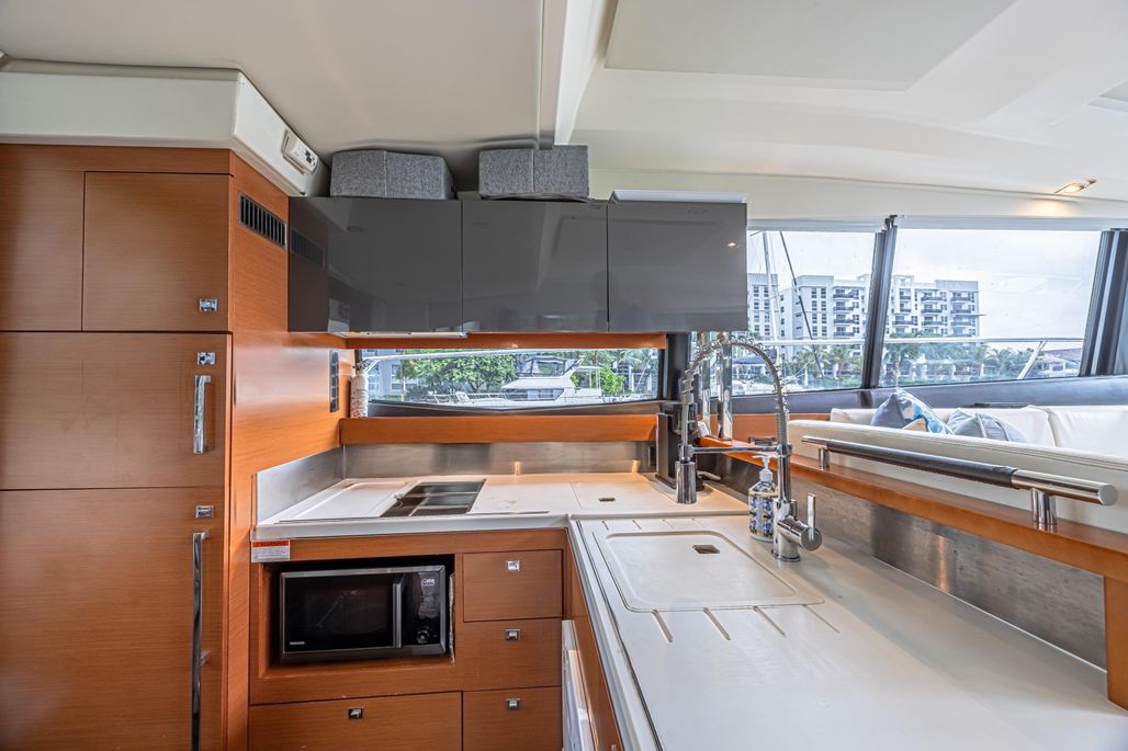 This 2013 Prestige 550S is available now and stands out as a fully equipped, turnkey sport yacht that has been meticulously maintained with an open checkbook. Notable upgrades include a SeaKeeper 6 gyro stabilizer, an upgraded air conditioning system, a watermaker, and a hydraulic swim platform.