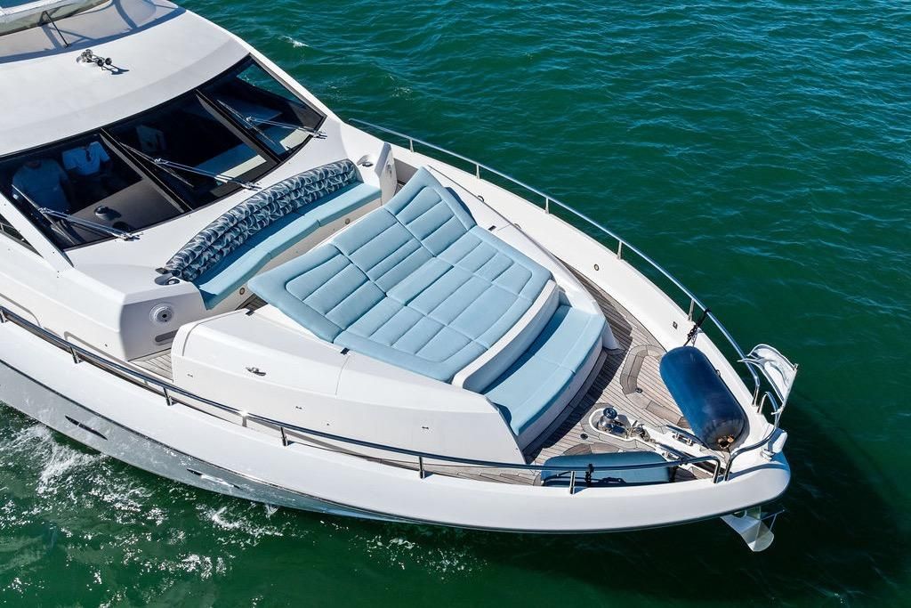 Every detail is finished as expected from a premium brand like Sunseeker, in a modern and stylish manner. The expansive sundeck (with enclosures) is the perfect spot to soak up the sun, unwind in style, and enjoy panoramic views of the open ocean. The large bow offers comfortable and spacious seating for a private retreat, ensuring a tranquil escape for those seeking a more intimate atmosphere. The aft deck invites you to savor the fresh sea breeze, creating the ideal setting for intimate dining, gatherings, or quiet moments of contemplation.