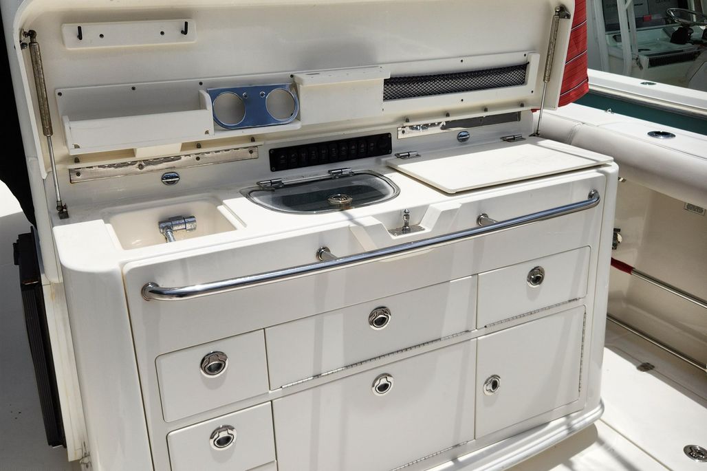 Boat stored inside since ownership with full cover and well kept. Boat is now stored on a new 2025 Patriot boat trailer. Triple 300hp Mercury Verado's w/ about 900 hrs. Owner looking to get into larger boat.