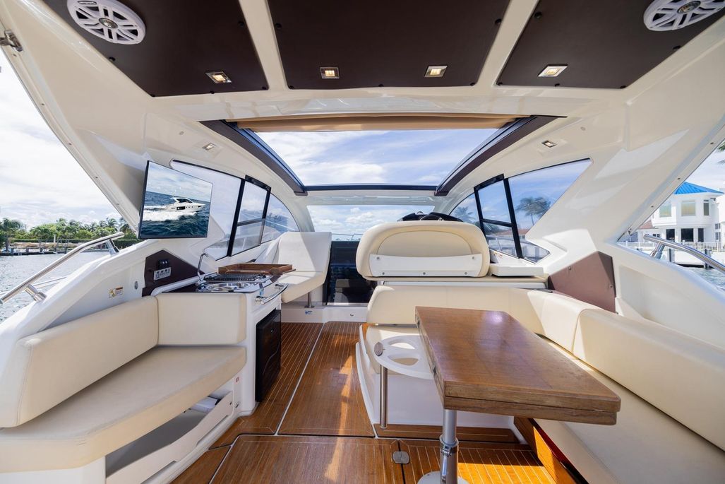 The M44HT is a versatile sport yacht with elegant sleek lines and excellent livability with its two generous staterooms, two heads configuration and tender garage with hydraulic platform. “She’s Royal” has recently been repowered with upgraded new twin Volvo Penta D-6 340 Diesel engines with a 3-year Volvo warranty and new outdrives. This is a joystick and bow thruster powered yacht that will give you the confidence to dock under any situation. Other recent upgrades to note are new exterior cockpit seat skin covers, upgraded GPS system, fresh bottom paint, new bow thruster, Starlink, new televisions, and recent full generator full service. She’s Royal offers the beauty and elegance of Italian design and is ready to be your next yacht.