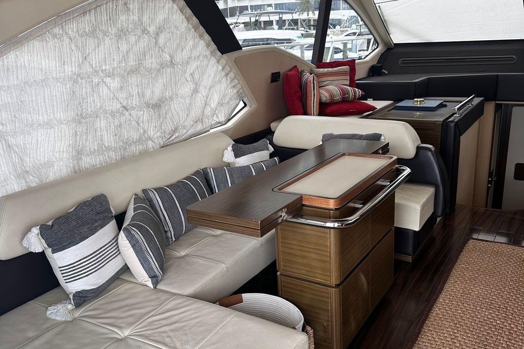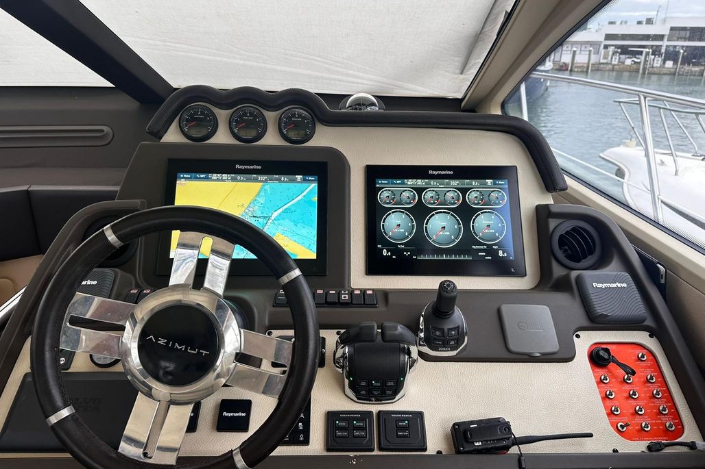 The 2015 Azimut 55S ENCORE is a Sport Cruise boat, equipped with three Volvo IPS600 engines with only 650 hours and Kohler generator with 1,800h, providing stability and great performance on the water. Its layout and design is classic Azimut, modern and timeless, with modern colors, wood and big windows. The boat has three cabins accommodating up to 6 guests overnight and will be a perfect option to receive your friends and family. Do not hesitate to call for more details or tour arrangement.
