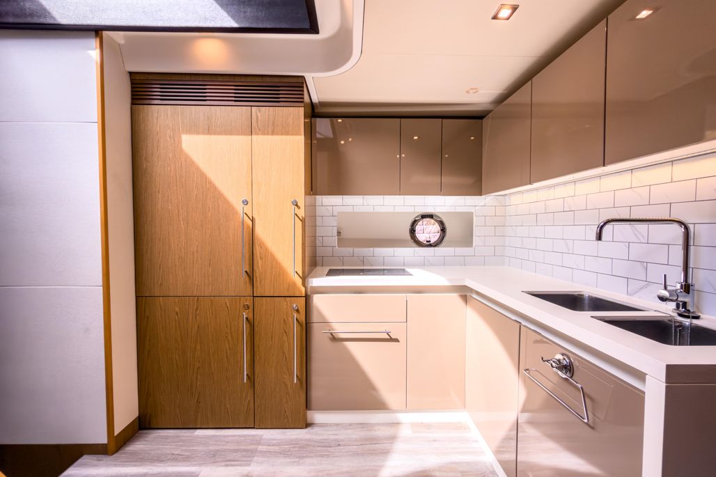 The Gran Turismo 49 galley is spacious and bright and fully fitted. It has lots of clever storage spaces including the ingenious ‘magic corner’. This makes cooking on board a real pleasure!