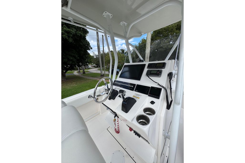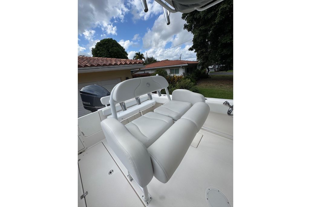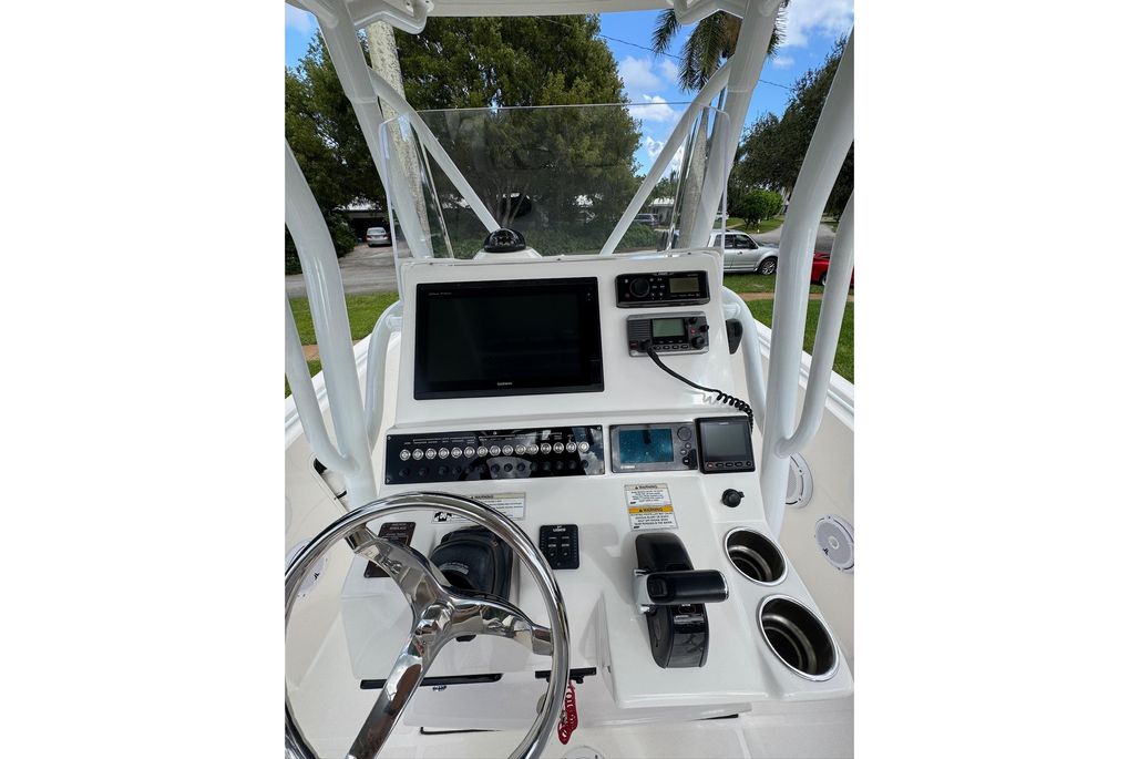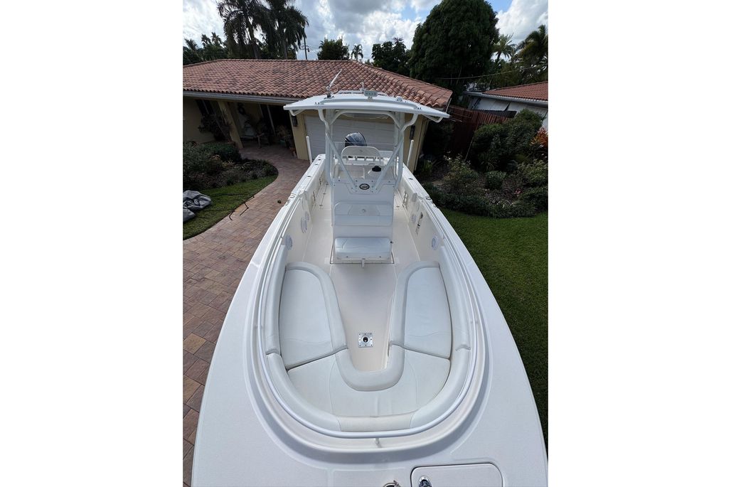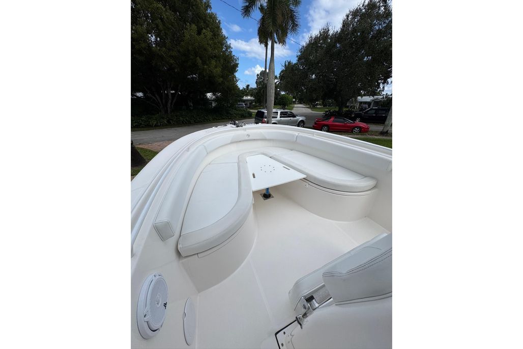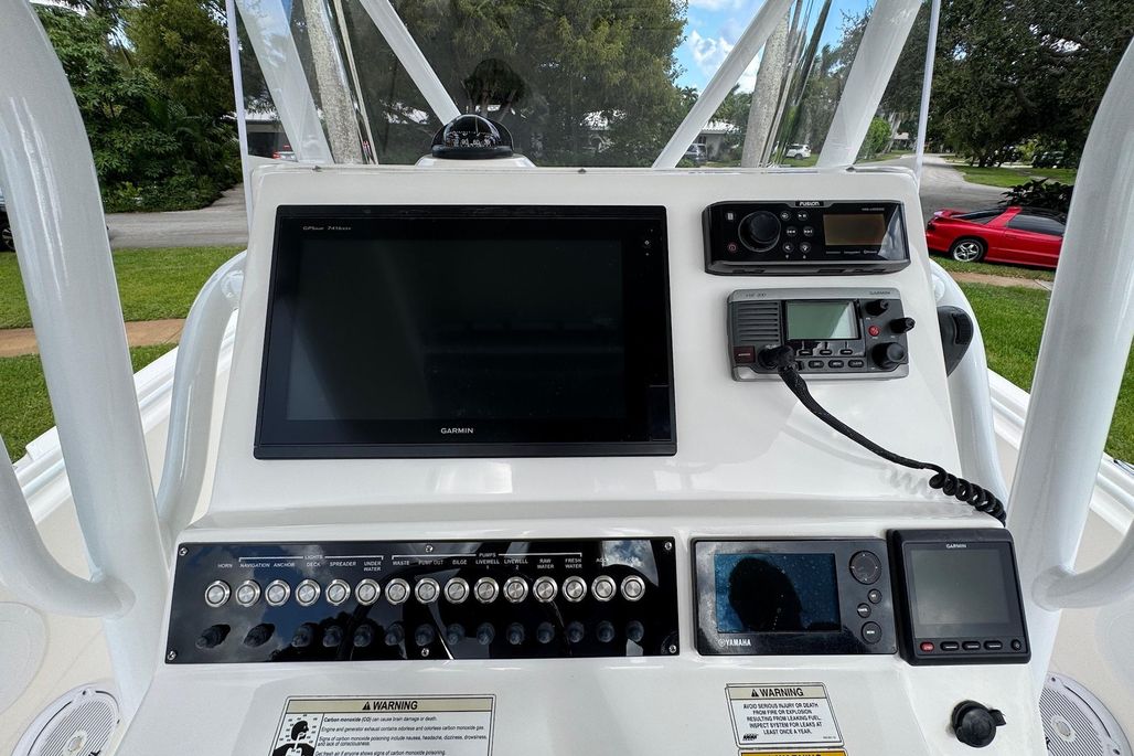 Yamaha 300HP (low hours, peak condition), Garmin GPS, Fusion Premium Sound, T-Top with electronics box and rocket launchers, ample rod storage, livewell, and fish boxes. Forward seating with cushions and convertible bow table. High quality finish throughout..meticulously maintained!
