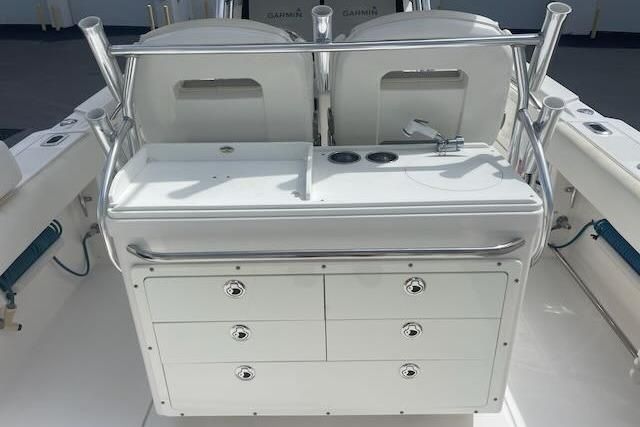 Captain maintained and utilized as a yacht tender. Original owner with custom features added by knowledgable yachtsman. Custom dive door, oversized electronics, and bowthruster are just some of the features that make this 318 Edgewater one of the most desirable available today.