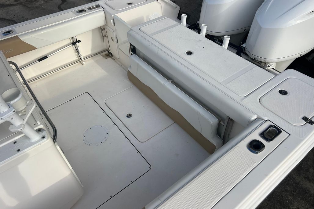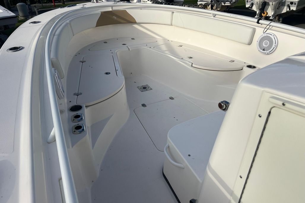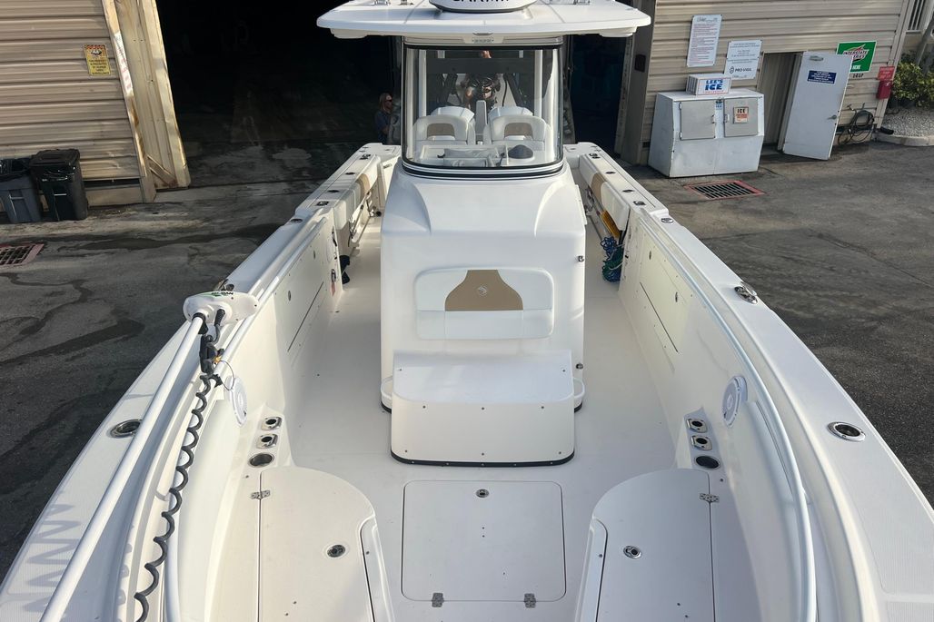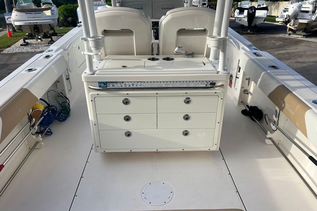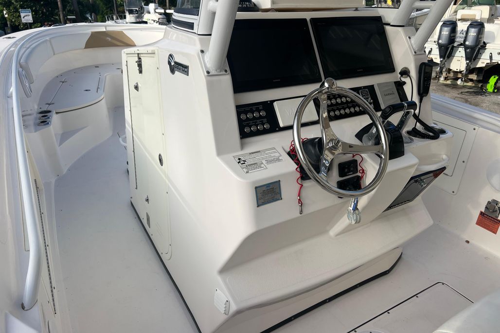This 2015 Edgewater 320CC is in excellent condition and comes with the 2018 Amera Trail Trailer. This Trailer has Electric Over Hydraulic Brakes and the Bunks were replaced in 2025. The boat is powered by twin 300 HP Yamaha 4-Strokes with only 550 hours on them. The boat is kept in a high and dry and gets cleaned regularly, all the cushions are stored in the console so they are in excellent condition. There is a very nice Electric Head in the Console with Overboard Discharge. It has an awesome electronics package including twin Garmin 7416XSV Multi-Function Displays, Auto Pilot, Radar 24" XHD Dome, VHF Radio, JL Audio Stereo, and Battery Charger w/ Shore Power Connection. It is also equipped with some very nice accessories such as the Rhodan Trolling Motor w/ a New 2025 Lithium Battery (Abyss). This is a 96" Shaft. TACO Outriggers w/ Telescoping Poles & Anchor Windlass. The boat has an awesome windshield that is built in to the Console, hard Top & Frame giving you excellent protection and incredible visibility. If you are looking for a boat like this you must come and see this one!