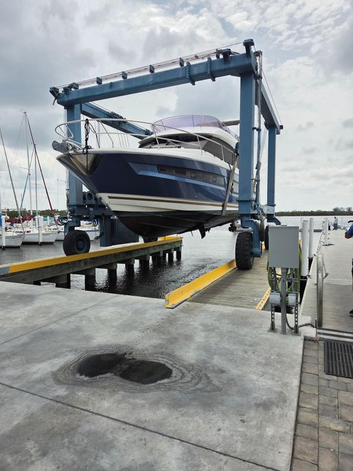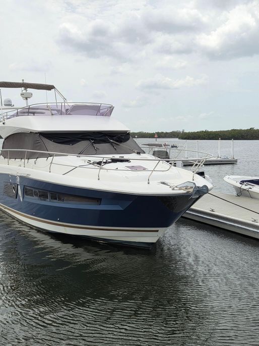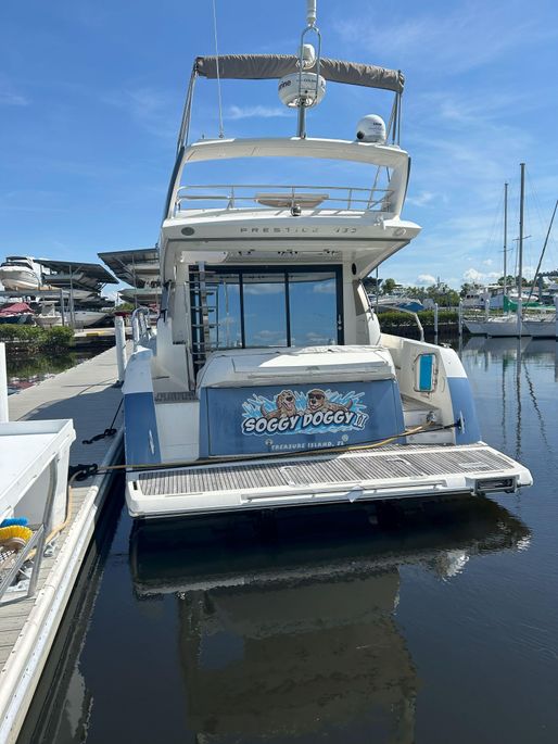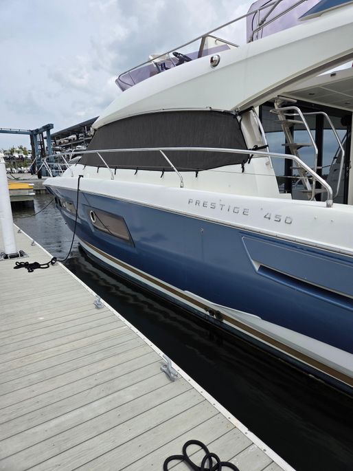 This 45' Prestige is in below average condition. It is currently on the hard at a marina in Ruskin, Florida, She did go thru the storm several years ago and has superfisial fiberglass damage, also the pods both need resealed. We will have newer pictures and information at a later time but the boat is ready to sell in its current condition.