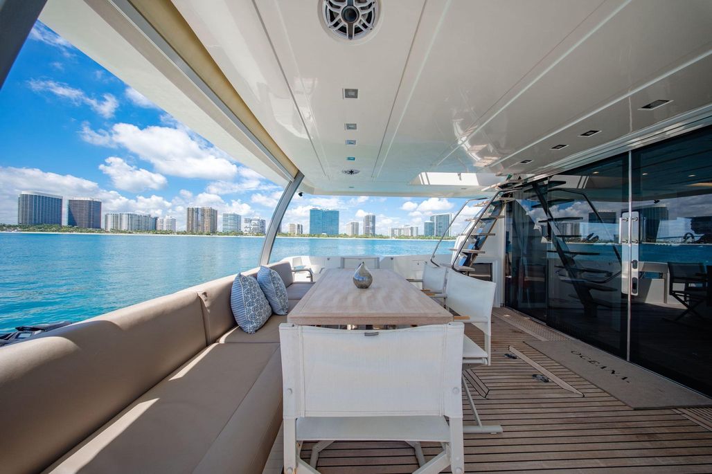 OCEANA underwent a major refit/upgrade in July 2024 ($250K+ SPENT) and is ready to cruise- This vessel is truly TURN-KEY with all major engine services (MAN M1-M5 and A Services) completed. All new exterior upholstery, covers and window screens along with the replacement of navigation electronics with Raymarine Axiom 16 XL's. Addition of exterior sound system with Fusion Apollo and JL Audio speakers, amps and subwoofers make this vessel a dream for new and experienced yacht fanatics.