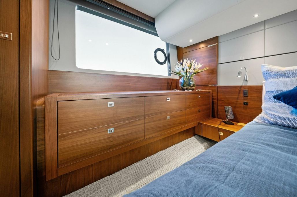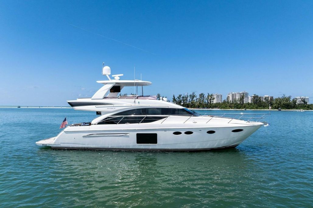 Step aboard ESCAPE, a beautifully crafted 2015 Princess F60 designed for luxury cruising and entertaining. Featuring a three-stateroom, three-head layout, ESCAPE offers a spacious salon with a pop-up TV, refrigerator, and freezer, along with a fully equipped galley and U-shaped dinette. Below deck, the full-beam master midship, forward VIP, and twin guest stateroom provide comfortable accommodations, each with its own head and full-size shower. With elegant finishes, abundant storage, and the signature performance of Princess Yachts, ESCAPE 2015 Princess F60 is your perfect getaway on the water.