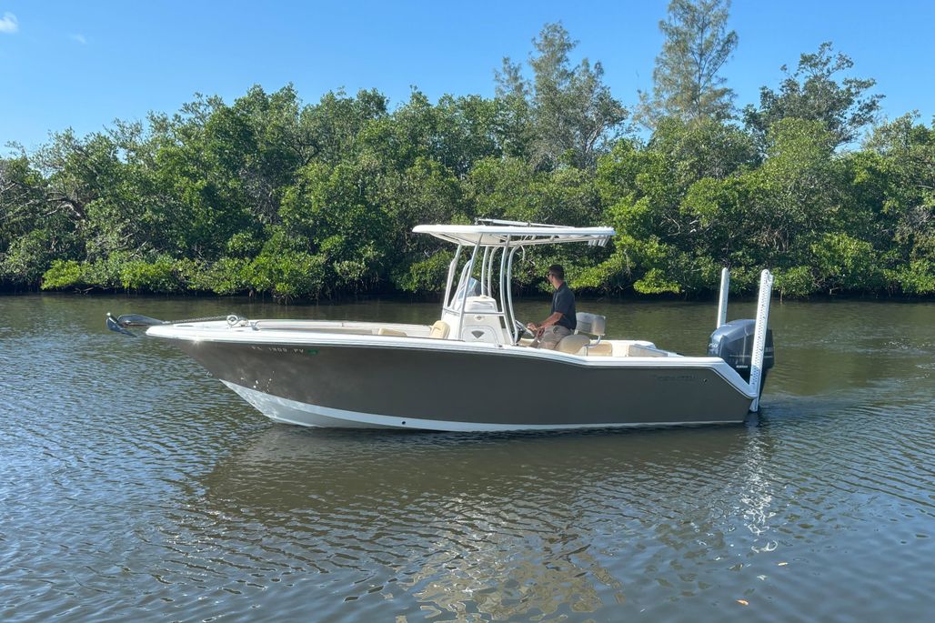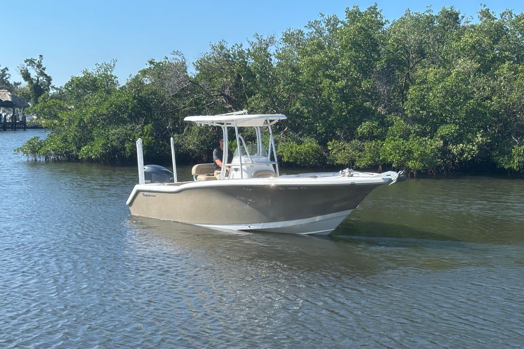 Introducing the 2015 Tidewater 230 CC Adventure, a remarkable center console boat that combines performance and style. With an overall length of 23 feet, this vessel is designed for both leisure and adventure on the water. The modified Vee hull, crafted from durable fiberglass, ensures a smooth and stable ride, making it perfect for various water conditions. Powered by a robust 250 hp Yamaha outboard engine with only 411 hours of use, this boat promises exhilarating speed and reliability. The thoughtful design includes ample space for activities, making it ideal for fishing trips or family outings. The Tidewater 230 CC Adventure is equipped with essential features that enhance your boating experience. Whether you're navigating coastal waters or enjoying a day on the lake, this boat is ready to deliver unforgettable moments on the water. Experience the perfect blend of functionality and comfort with this exceptional center console.