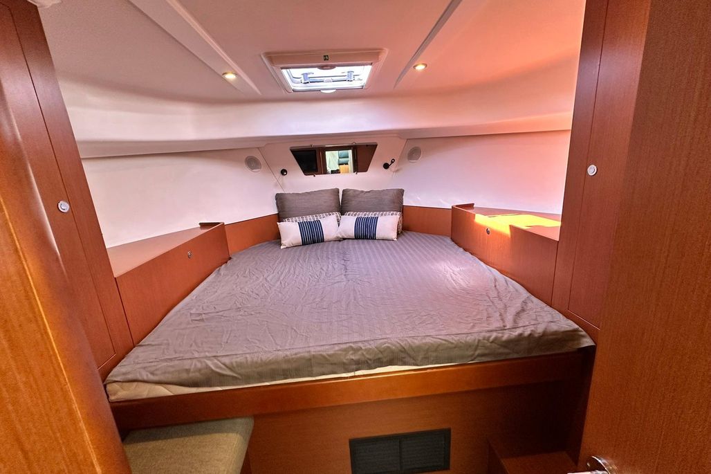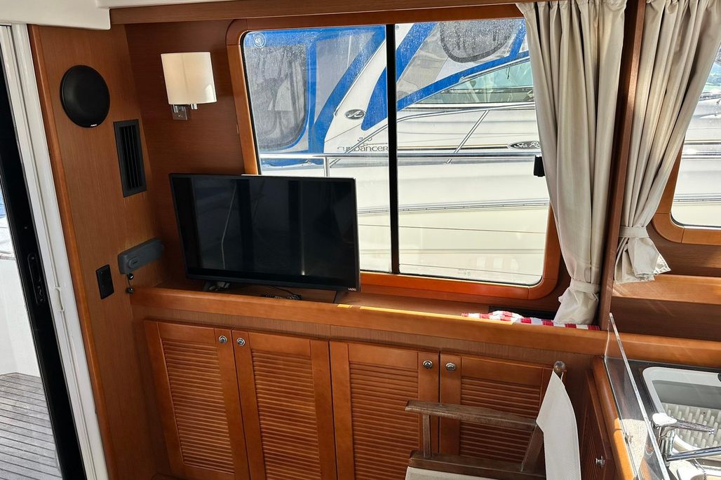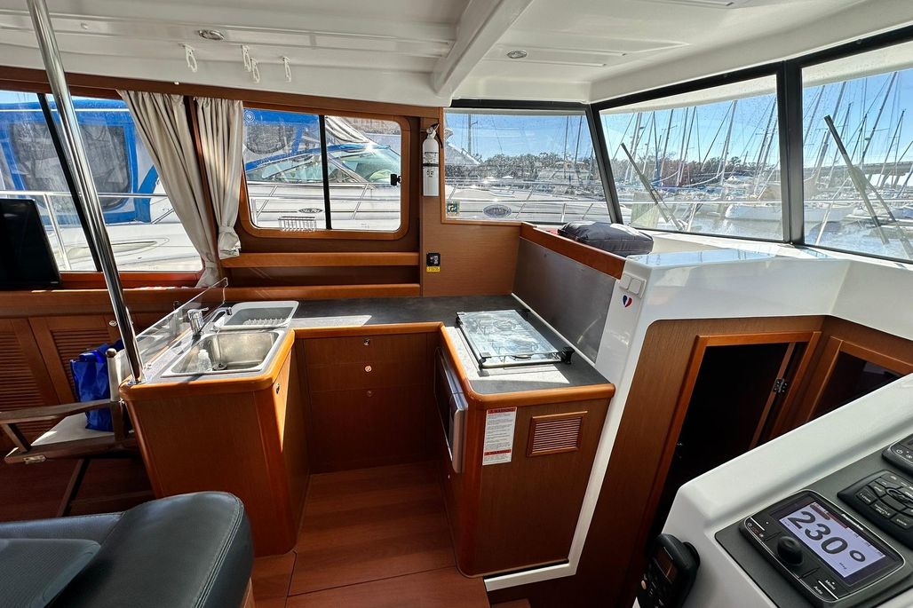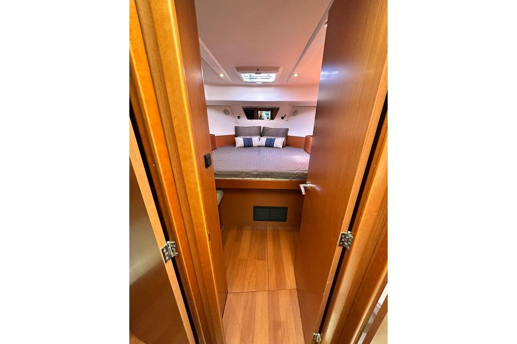 - Comfort: The interior is known for its bright, airy saloon with 360-degree visibility, a U-shaped galley, a master cabin forward, and a small guest cabin with bunks.