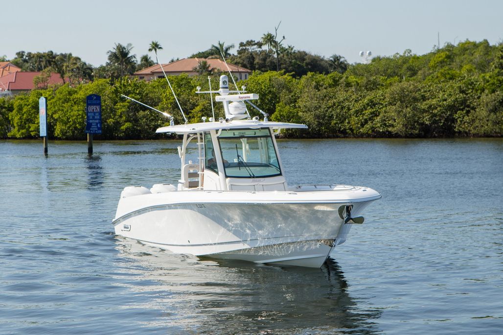 New to the market, as the sellers are moving up & have picked out their next boat. This 2016 Boston Whaler 350 Outrage with triple white 350 HP Mercury Verado with Joystick Piloting. Notable options included: