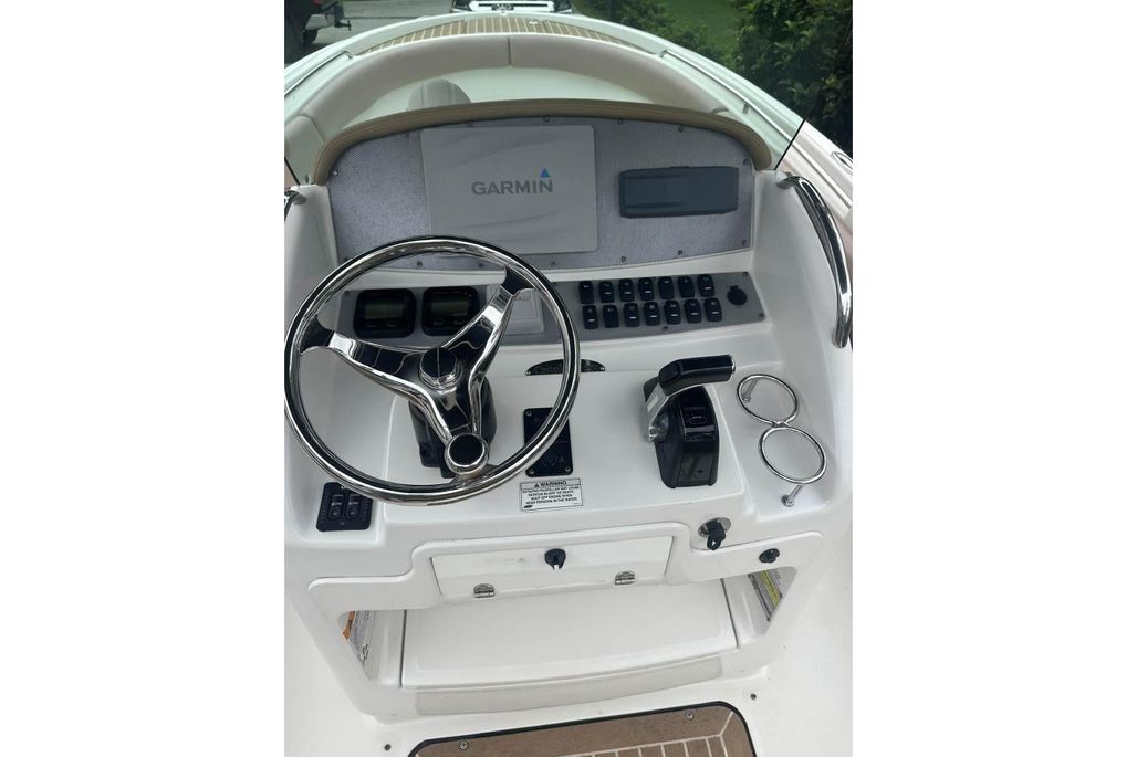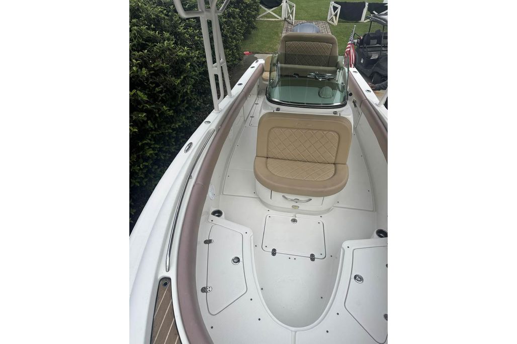 This Catalina 23 is powered with a 300 HP Yamaha 4 stroke with proven economical performance. A deep V hull and flared bow will give you a smooth, dry ride to your favorite fishing spot or day at the sandbar. It has recently been serviced and new batteries installed. Covers for the console and rear seating included.