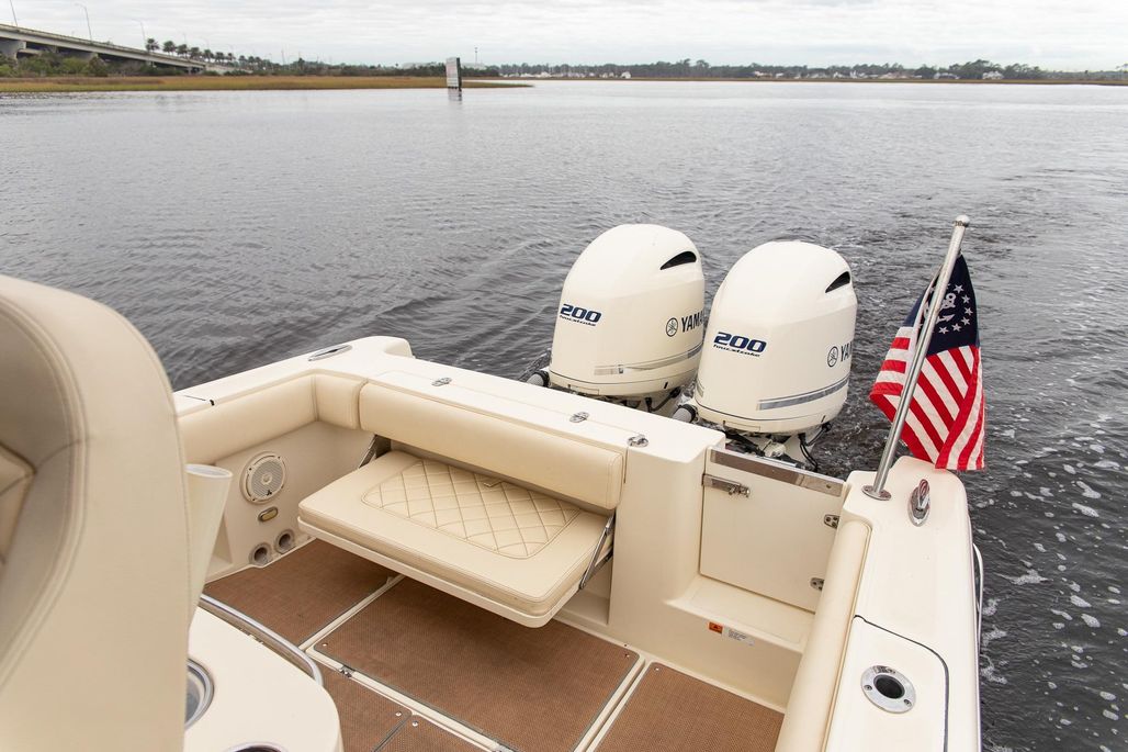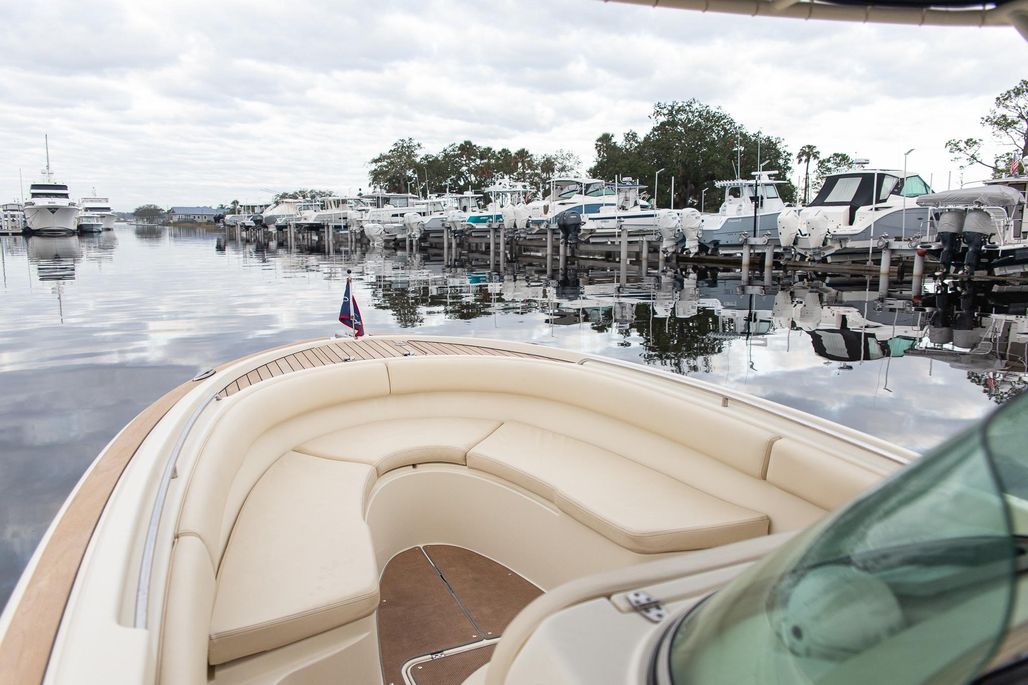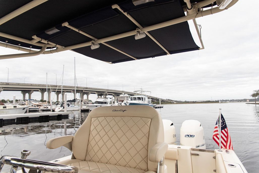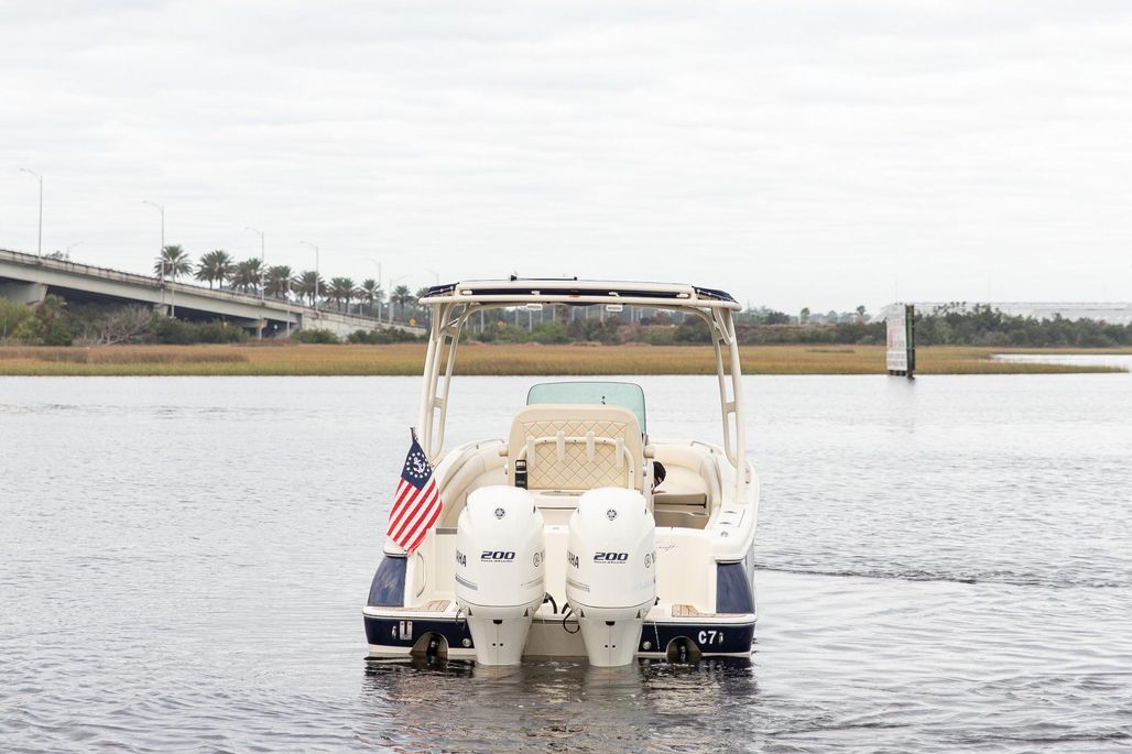 The Chris-Craft Catalina 26 is all about luxury. The graceful silhouette accommodates 8 passengers with expansive seating. For protection and comfort on long days, the deep V hull and flared bow keep spray at bay and all passengers dry on deck, and should you choose, there’s an extendable sunshade that slides aft to provide rear coverage overhead. Powered by the Preferred Twin Yamaha 200hp This boat is a blast to drive, Both Fast and Fuel Efficient, that will make your day on the water that much more enjoyable! This boat has been Kept in Dry Stack Storage its entire Life and it Shows!