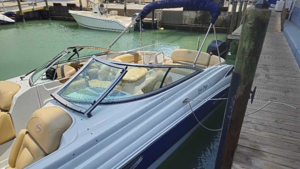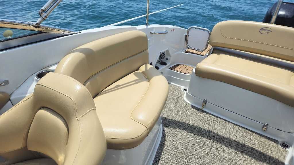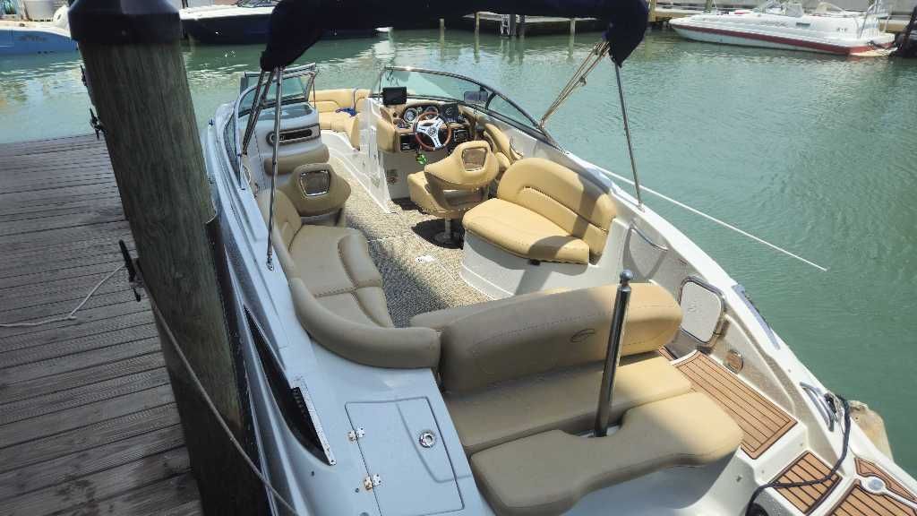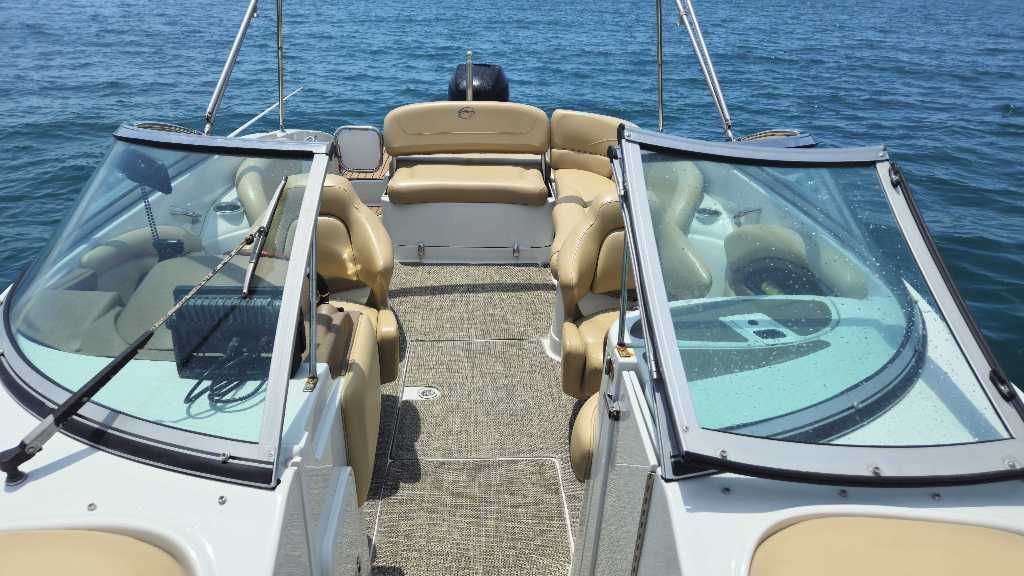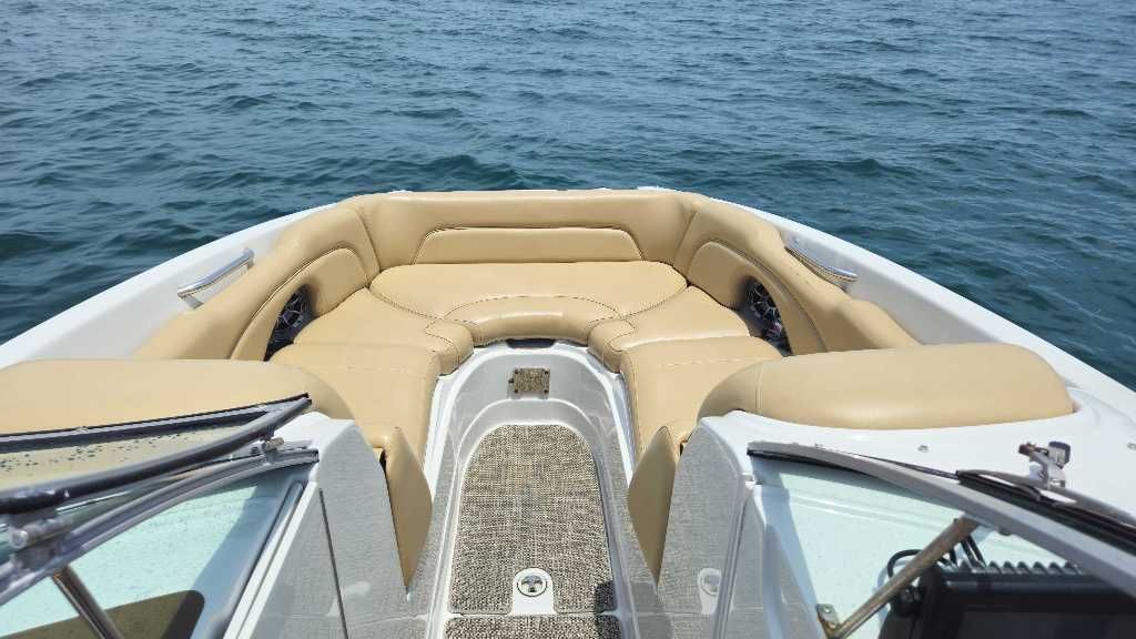 Introducing the 2016 Crownline E6XS, a stunning 26-foot deck boat that combines performance and style. Crafted from durable fiberglass, its modified Vee hull design ensures a smooth ride on the water. Powered by a robust 300 hp Mercury outboard engine, this vessel reaches cruising speeds of 40 mph and can achieve a maximum hull speed of 55 mph, making it perfect for thrilling adventures. With a generous seating capacity for 12, it’s ideal for entertaining family and friends. Equipped with two heads, this boat offers convenience for all aboard. The sleek design is complemented by stainless steel 3-blade propellers, enhancing both performance and aesthetics. With a range of 200 miles, the Crownline E6XS is ready for extended outings. Experience the joy of boating with this exceptional vessel, perfect for creating unforgettable memories on the water. Call the professionals at Black label Marine Group today and let us make your boating dreams a reality. We offer great financing to make your boat buying process smooth and easy.