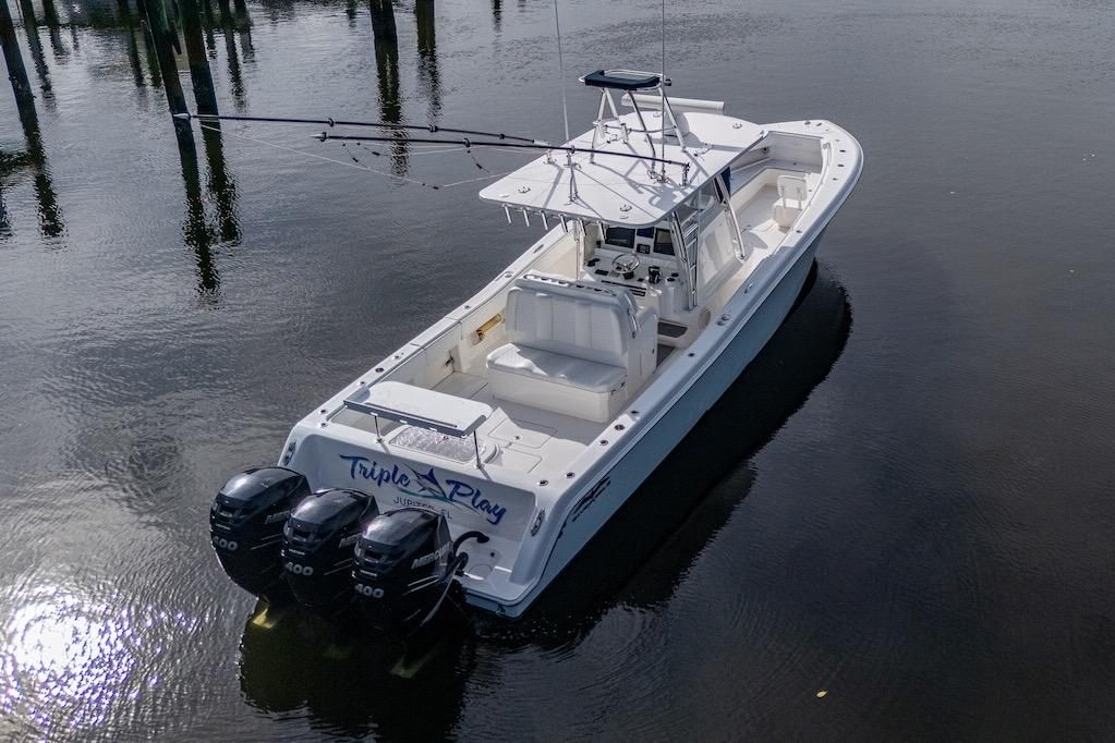 Triple Play is an exceptionally outfitted 2016 Invincible 39 Open Fisherman powered by Triple Mercury Verado 400s (2020 models) with ~275 hours and Platinum warranty coverage through 10/14/2025. Ice Blue hull, new bottom paint (April 2025), new seating canvas (Dec 2024), extensive Garmin electronics package, upgraded JL Audio system, bow thruster, dive door, and a long list of fishing and comfort upgrades.