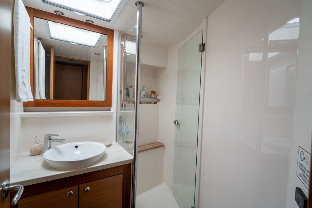 With twin 725hp Volvo Penta IPS950s and a large fuel capacity, you have both the speed to get there quickly and the range for extended journeys. Powering your amenities at anchor is a quiet 17.5 kW Onan diesel generator.