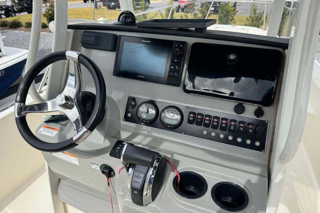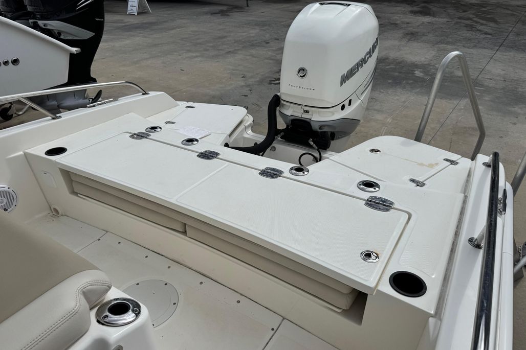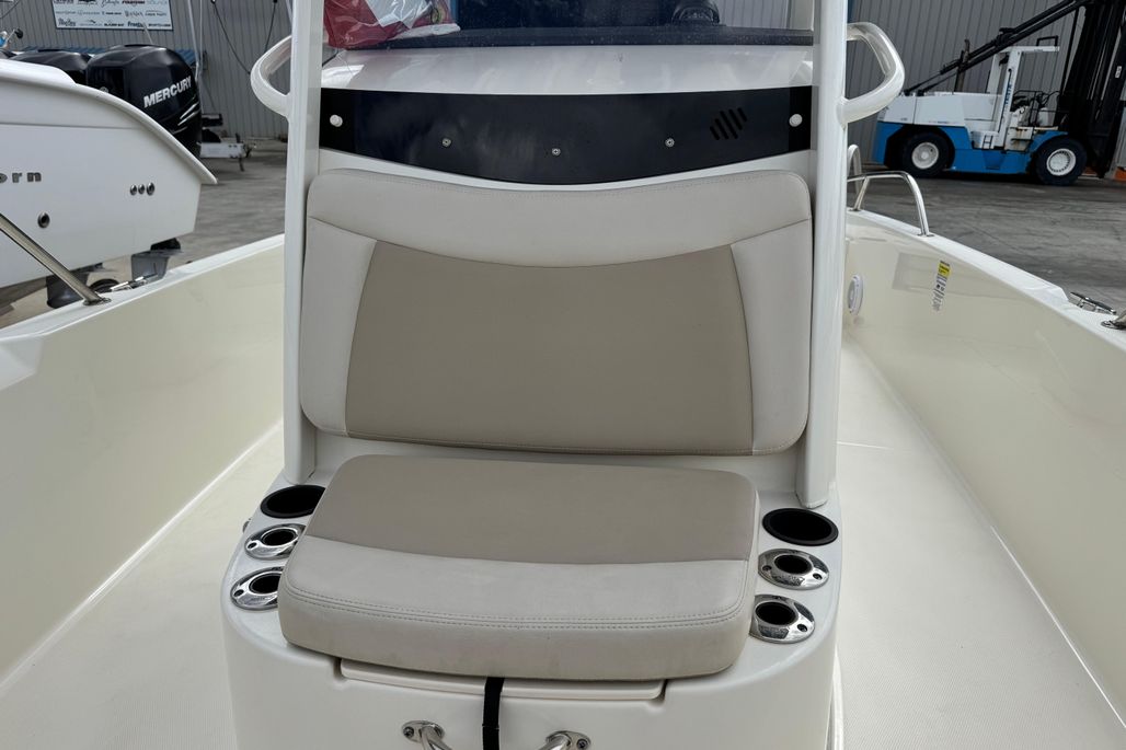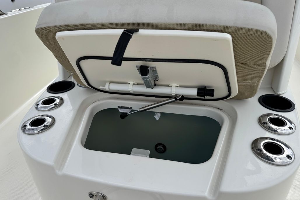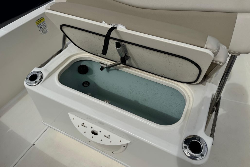 - Available reversible pilot seat with livewell, raw-water washdown and stainless-steel rod holders, delivers big angling capability.