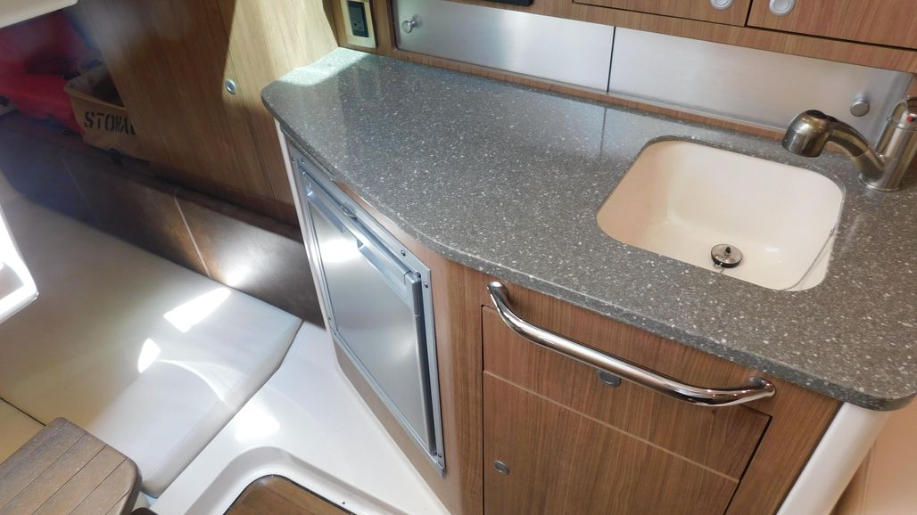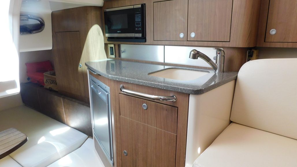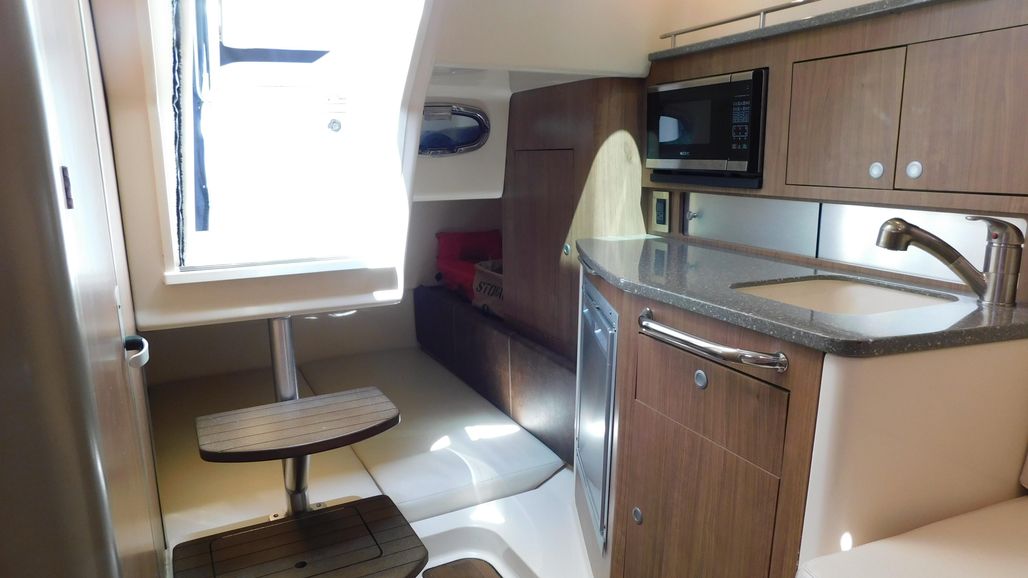 Rugged sophistication, cutting-edge convenience and incredible functionality inform the 315 Conquest®, a boat designed for hardcore anglers, express cruisers and overnighters. From the spacious cabin with large skylight over the galley, to the well-protected helm, to angler-pleasing cockpit, the 315 perfectly marries capability and versatility. Personalize the 315 to suit all of your needs, and enjoy long days and nights onboard with confidence that goes to the core.