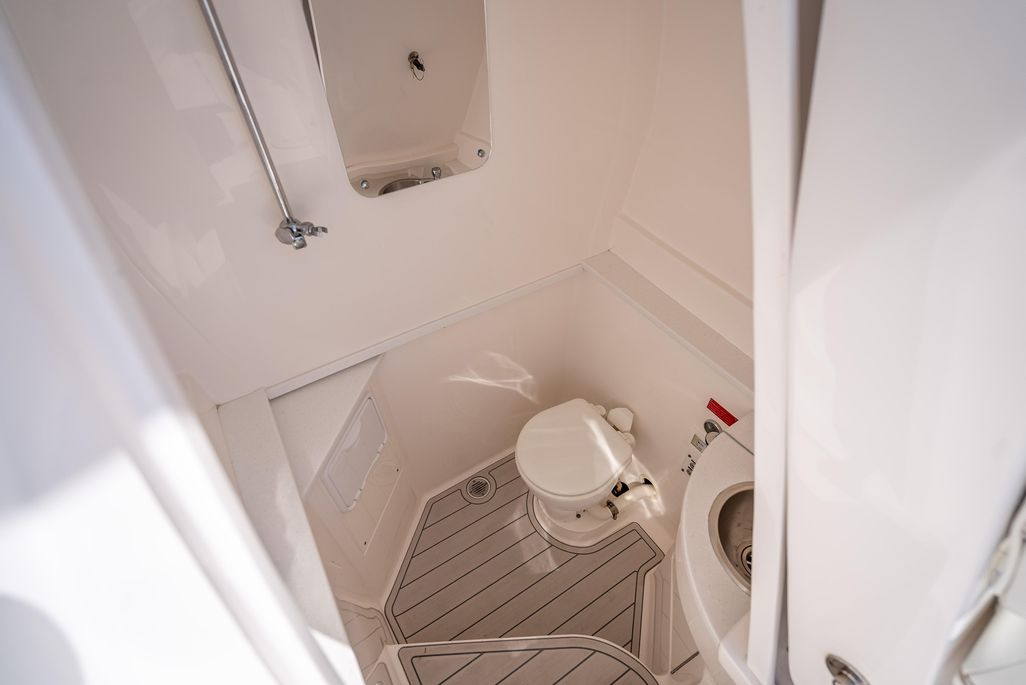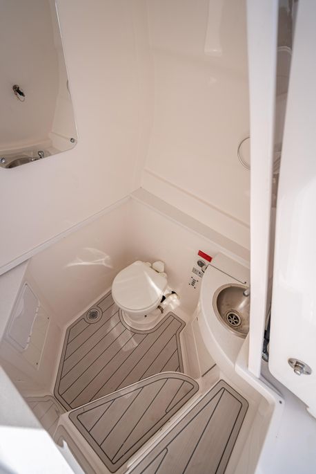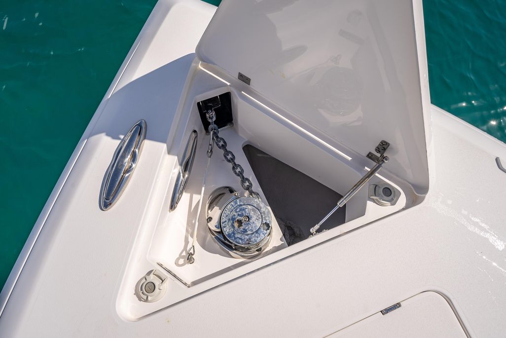 The sea-worthy design of this stunning 40-footer begins with our signature transverse stepped hull with huge free boards for the utmost in safety, stability and handling. Creature comforts include an expansive head with vanity and sink, and chaise seating that converts to a luxurious sun lounge/daybed at the push of a button.
