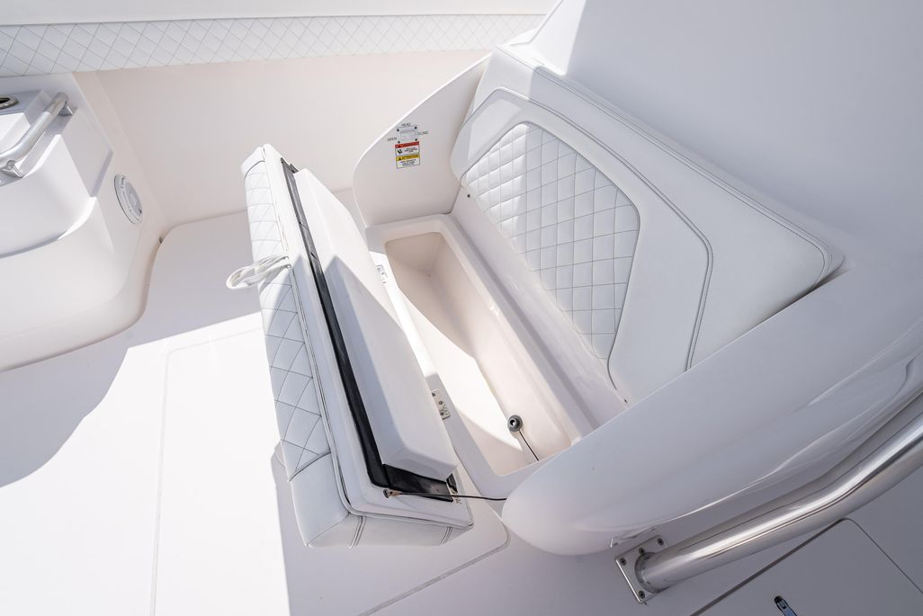 A serious array of fishing amenities include a 5’2” forward in-floor insulated fishbox with macerator pumps, 9-foot gunwale rod lockers, a variety of optional large bait wells, and 15 stowage compartments. In addition, Intrepid will always customize each boat to suit the owner’s personal fishing style with options such as a fiberglass T-top supported by sturdy 3-inch diameter bars, outriggers, rod racks, additional bait wells and the latest in electronic and navigational packages.