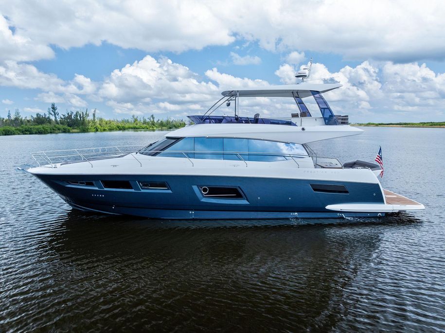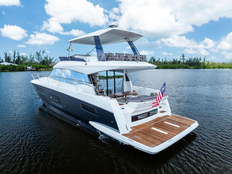 This impeccably maintained 2017 Prestige 560 Flybridge boasts a suite of recent upgrades and services completed in July 2025, including a full engine, generator, and pod service, new transmission seals, and a complete bottom job. Additional updates include new ceramic coating, refinished teak decking and tables, new batteries, carbon fiber accents, tinted windows, blackout covers, and upgraded hydraulic swim platform components. With only 550 hours on the main engines, she is turn key and ready for the next owner!