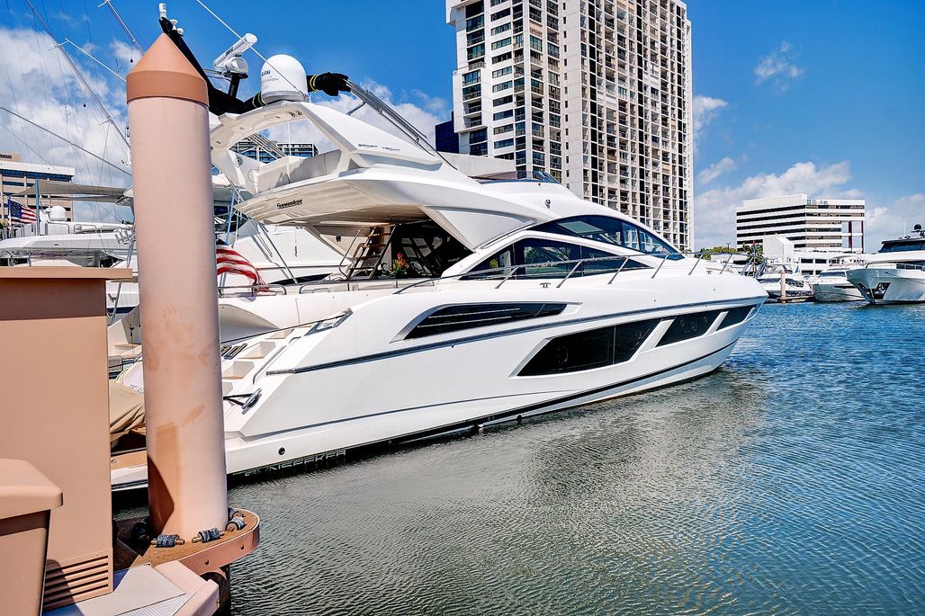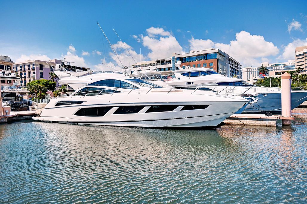 Welcome board “Once Around” a one owner 2017 Sunseeker Predator Sport Yacht located at Palm Harbor Marna in West Palm Beach. The 68 Sprot Yacht delivers the best of both world with the sleek style and performance Predator fans love with the addition of a great Sport Fly Bridge Command Center. The oversized cockpit has a large L Shaped seating area with Teak Table and full wet bar featuring a cockpit fridge. Entering into a large salon you will find all the comforts of home including a great seating are for watching tv, a dining table, and the main helm station. The 68 Sport Yacht Features a Galley Down layout that give much more entertaining space on the main deck. Below is a great 3 staterooms layout with a full-size galley. “Once Around” has been fully maintained and has all services done when called for. Call today to arrange a private showing of this beautiful Sunseeker.