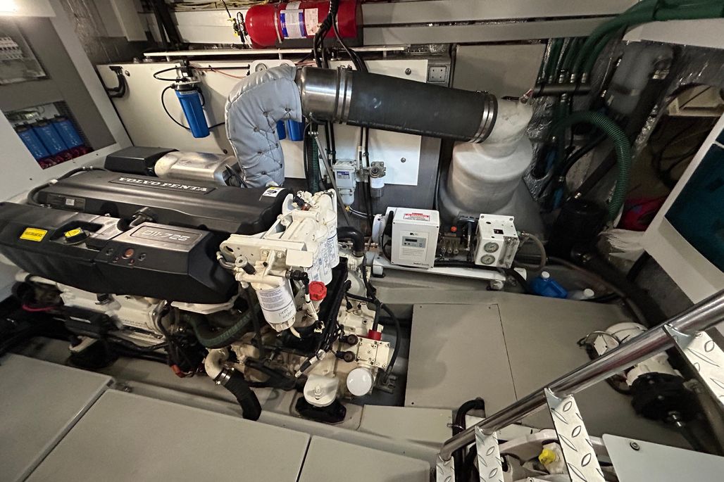 She is shaft driven powered by twin Volvo D-11 725 HP engines