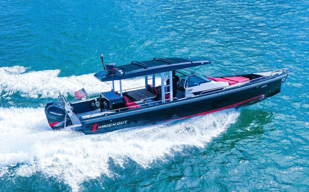 This 2018 Axopar 37 Sun Top is unlike anything else on the water. It’s the only Axopar 37 in the world with a full custom black paint job, paired with bold red upholstery and premium custom SeaDek flooring—a striking combination that sets it apart in any marina.