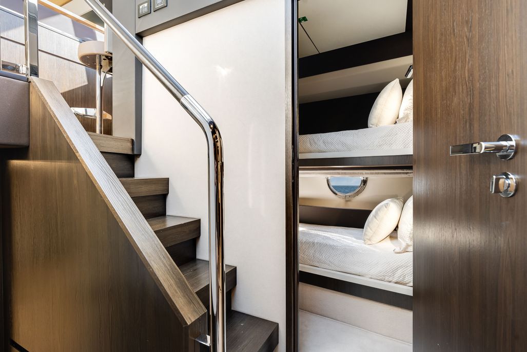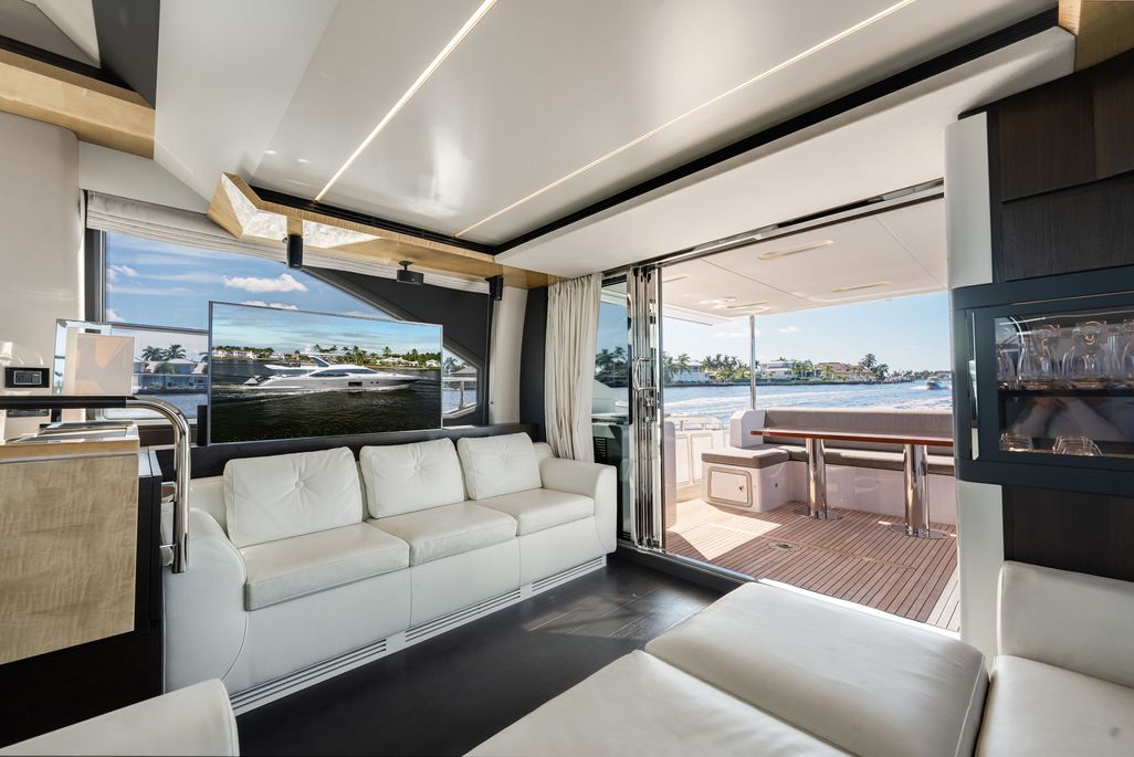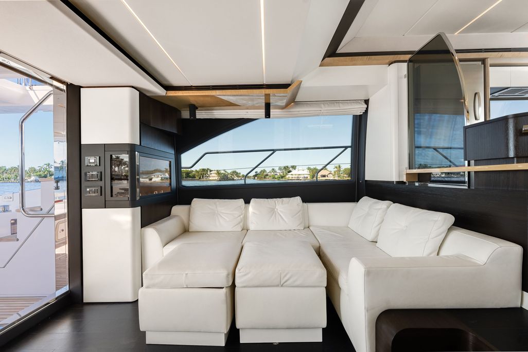Azimut has engineered a huge amount of space in this model;, from the hull on up, it boasts the largest flying bridge in its class, and a cleverly laid out interior, making this 66' yacht feel much larger.