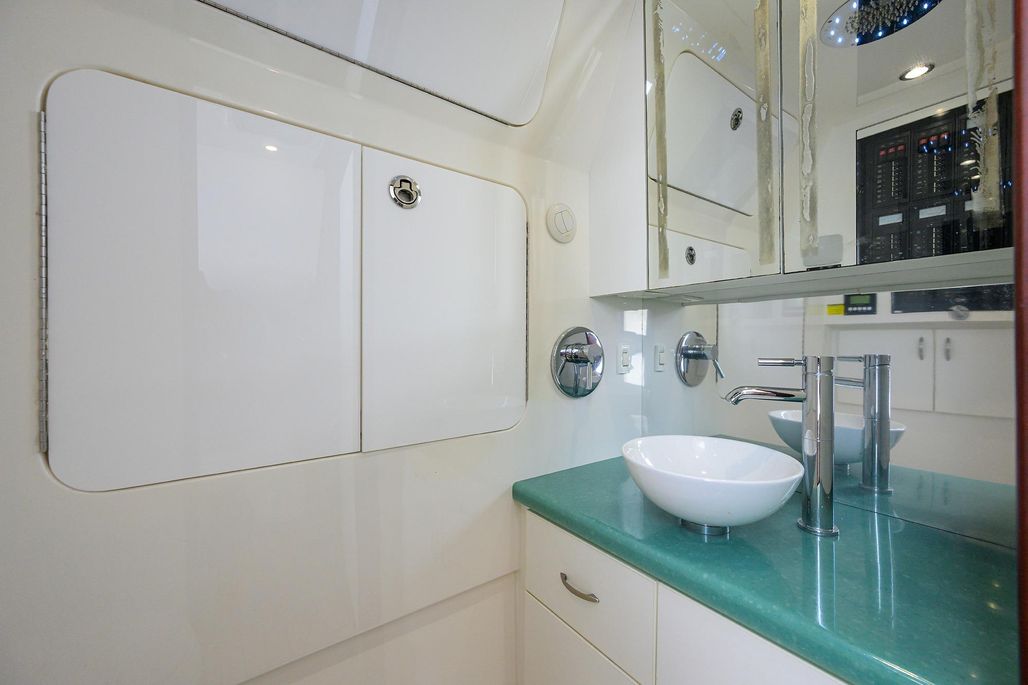 To ensure comfort at sea, this 42 Buddy Davis is outfitted with a SeaKeeper 6 stabilizer, eliminating roll and keeping guests steady whether trolling, drifting or cruising. True to the Buddy Davis pedigree, she boasts an aggressive hull design, first-class fit and finish, and layout tailored for both hardcore fishing and family enjoyment.