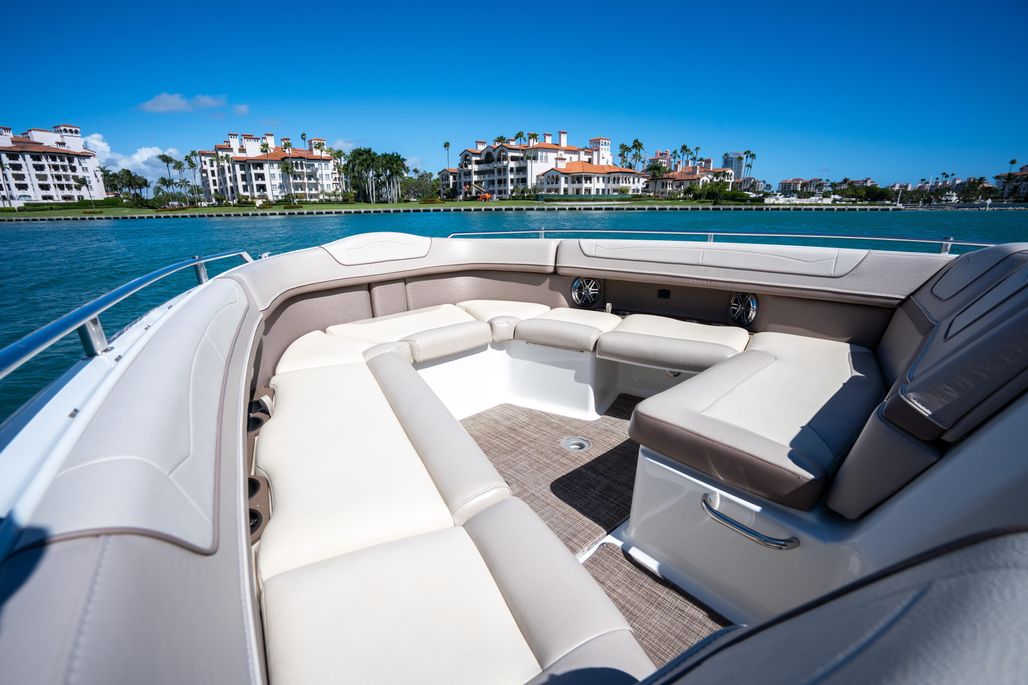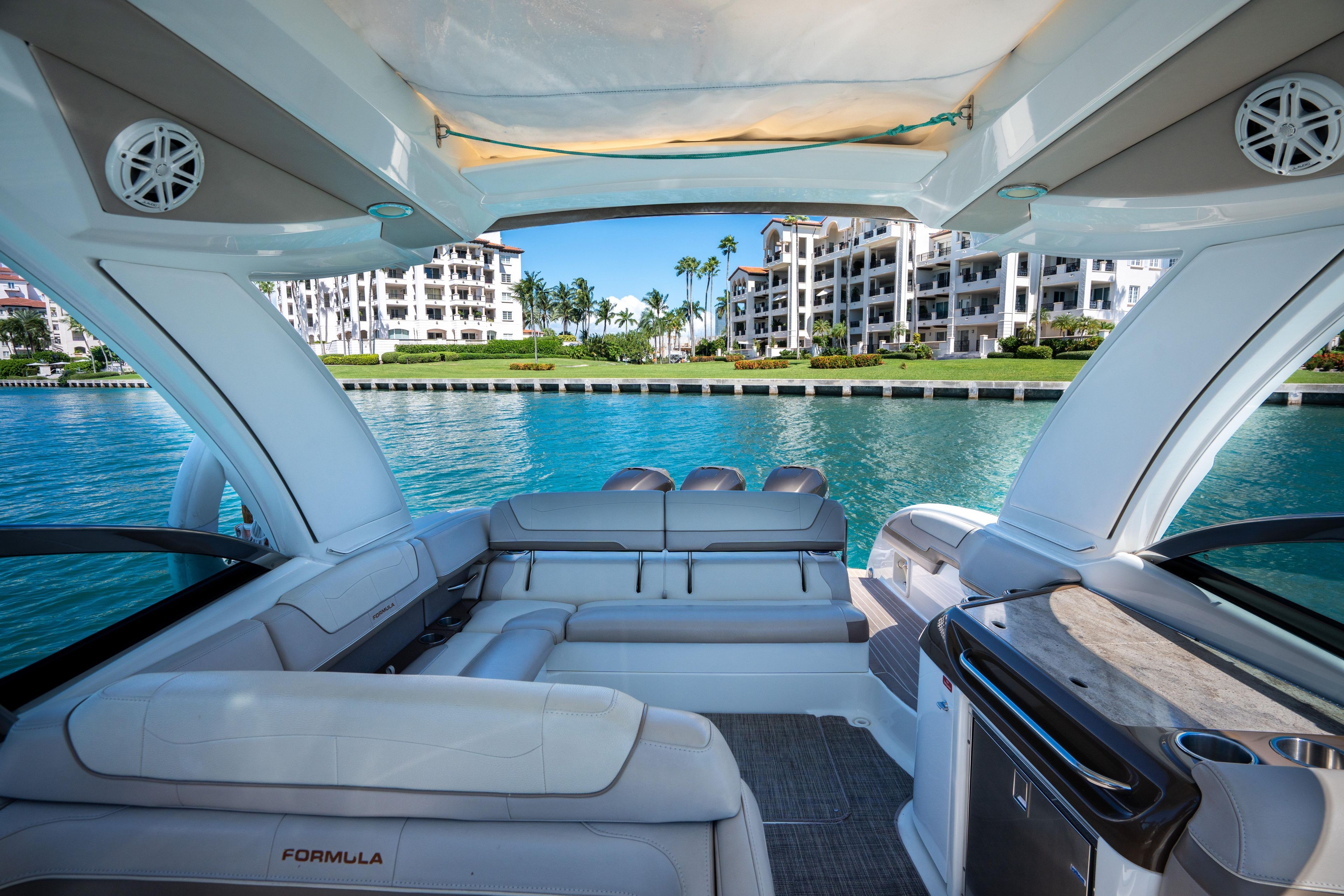 Turn heads on the water with this 2018 Formula 350 Crossover Bow Rider, a high-performance bow rider that combines sleek styling, comfort, and power. Powered by triple Mercury Verado 350HP outboards, she delivers exhilarating performance while maintaining the refined elegance Formula is known for. This second-owner, lift-kept vessel features a rich mocha hull with bronze accents, luxurious new exterior upholstery, and a Seakeeper 3 gyro stabilizer, making her one of the cleanest and best-equipped examples available. With low generator hours and meticulous maintenance, she’s turnkey and ready for day cruising, entertaining, or offshore adventures — perfect for family cruising, fishing trips, or luxurious weekend escapes.