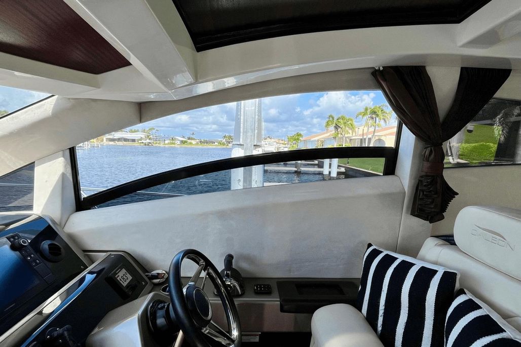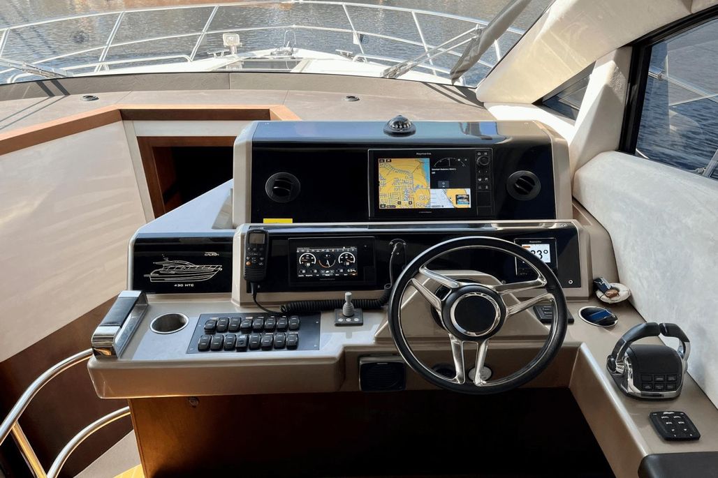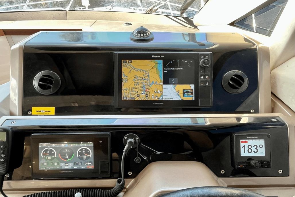 - Ergonomic raised helm station- providing full RayMarine electronics suite with GPS, AIS, Chartplotter, Radar, Auto Pilot, VHF radio, and a Bow Thruster.