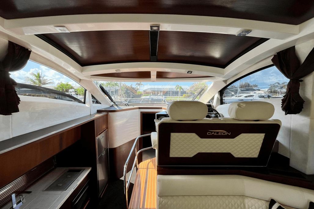 Turn heads and command the water aboard "METAMORPHOSIS", a stunning 2018 Galeon 430 HTC that combines sleek European styling with powerful perfomance and equisite design. Powered with twin Volvo Penta D6 435 HP engines, she delivers agile handling and smooth cruising, making her perfect for weekend escapes or coastal adventures. The Fischer-Panda generator ensures you enjoy full onboard comfort wherever your journey takes you. Enjoy easy water access and enhanced leisure time with the hydraulic swim platform, perfect for launching water toys,relaxing in the sun, or making boarding effortless. With its sporty profile and premium appointments, "METAMORPHOSIS" is a true representation of Galeon's craftmanship. Whether you're entertaining guests or seeking a private getaway, this yacht will not dissapoint on delivering an exceptional experience.