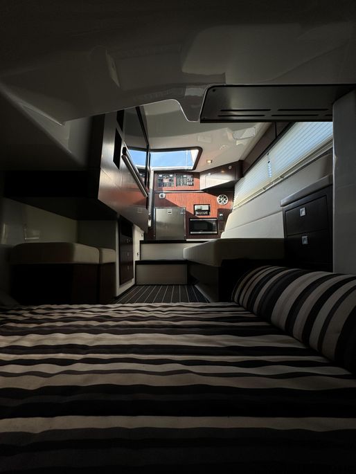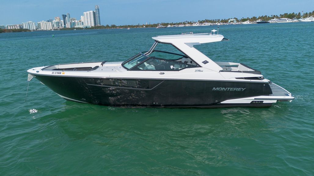 The Monterey 378 SE combines the ideal day yacht configuration with overnight capabilities. Above deck, you'll find a big, open layout with a large cockpit and bow seating spaces, as well as an L-Lounge with Sun-Island seating, allowing for the perfect setting for any of your boating needs. Below deck, a tastefully outfitted cabin greets you with accommodations to comfortably sleep 2, making overnight trips enjoyable and relaxing.