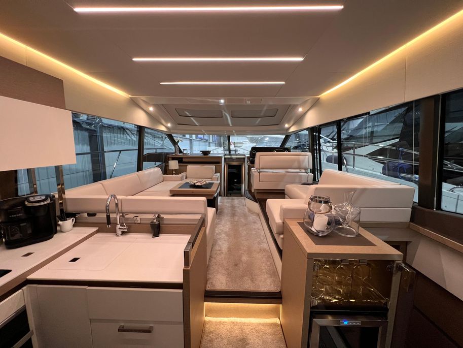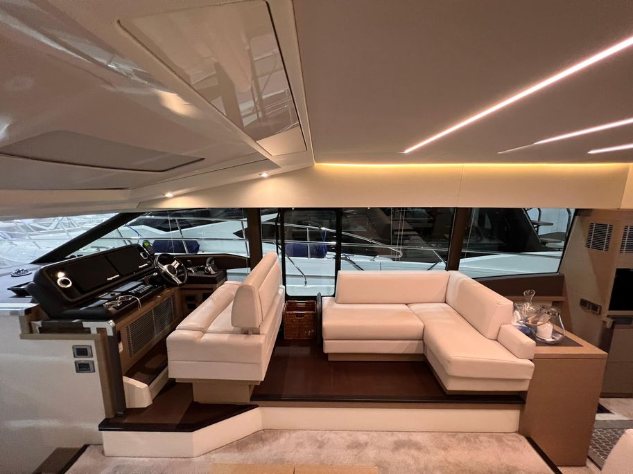 The PRESTIGE 520 S is distinguished by her powerful hull, designed for dependable high performance and excellent handling at sea. This 52-foot coupé has real character, distinguishing herself on the water with her sporty-chic style. True to the line, she features an incomparable open design. With her generous interior volume, the PRESTIGE 520 S lends herself to easy, enjoyable entertaining.