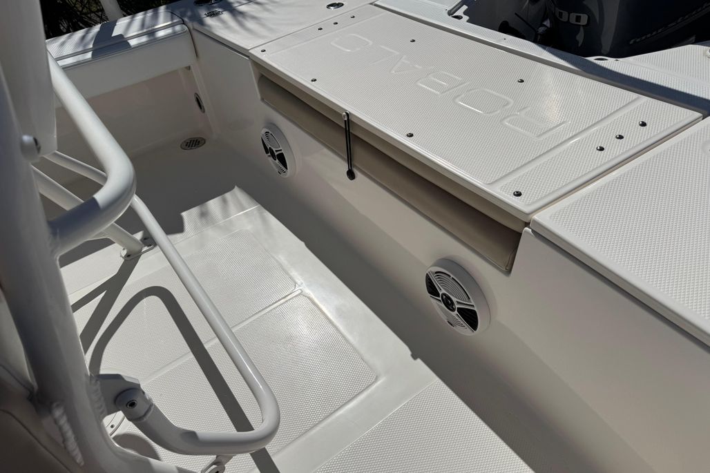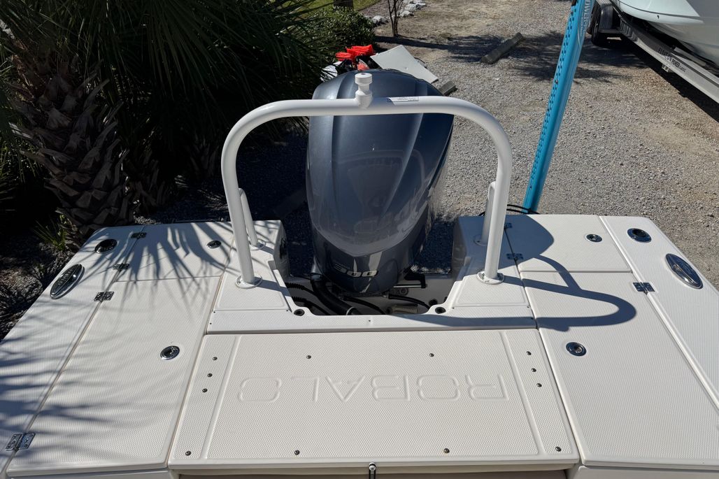 The wave of excitement that is Robalo's new Cayman Series gets even bigger and better with our new 246 bay boat flagship. If you thought the 206 and 226 were something special just wait until you eye the 246. Designed to take inshore/offshore fishing capabilities to another level, the 246's Extended V-Plane hull design can easily navigate both shallow water fishing holes and big water destinations. Simply stated, where ever they're biting, the 246 can speed you there. The boat's wide deck layout combined with excess hull flare, delivers more fishing space, stability and a dryer ride than rivals. The 246 simply won't back down no matter what Mother Nature dishes out. Robalo leaves no detail uncovered. Innovative hideaway seating says welcome aboard then converts to the ultimate fishing machine with huge casting decks forward and aft. Lockable rod storage and live bait well capacity is best in class. Designed for comfortable extended outings, the 246 features a forward entry privacy head and wrap around bow seating. The best helm design in this size range features Yamaha digital gauges with plenty of room for advanced electronics. A complete array of stainless steel hardware is a cut above. The 246 is equally impressive under the gelcoat with Kevlar reinforcement, rot free construction and a poured composite transom.