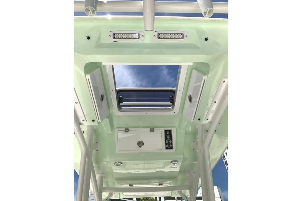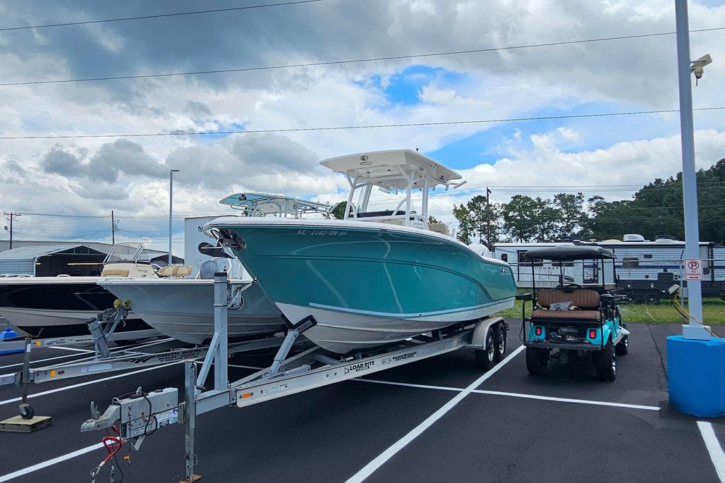 Equipped with Garmin electronics, VHF radio, premium sound system, trim tabs, and a windlass anchor, this boat is ready for any adventure. The stylish hardtop with rocket launchers and spreader lights offers both shade and utility for long days on the water.