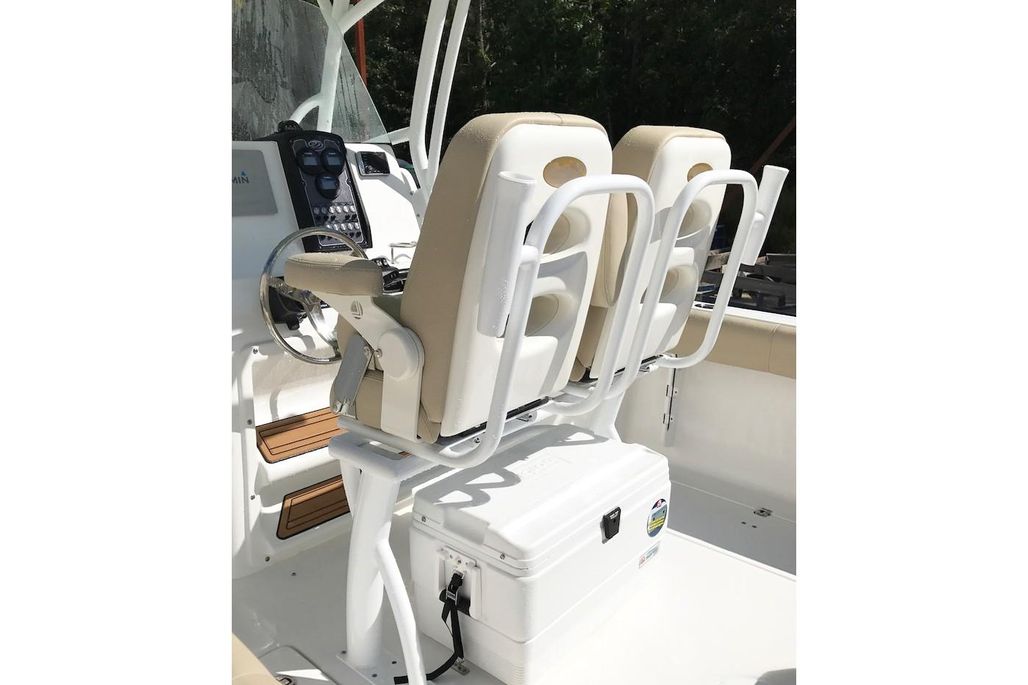 This 2018 Sea Fox 266 Commander offers the perfect balance of offshore fishing performance and family-friendly comfort. Powered by twin Yamaha 200 HP four-stroke outboards with only 150 hours, it delivers dependable power, excellent fuel efficiency, and a smooth, confident ride in a variety of conditions.