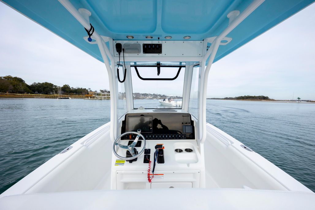- Integrated Fiberglass T-Top with Tempered Glass Enclosure