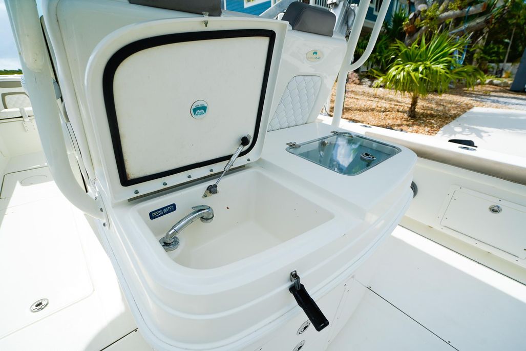 - Fiberglass Leaning Post Tackle Center with Sink & Livewell