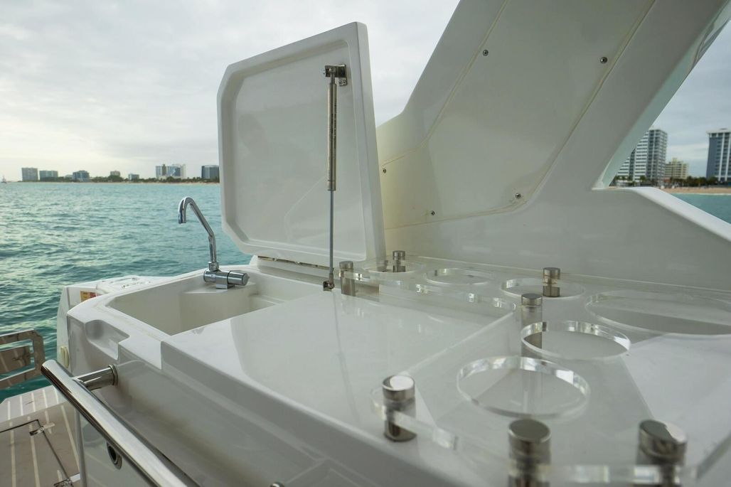 We are pleased to present this exceptional 2019 Azimut 40 Verve, currently on the hard in Fort Lauderdale. This high-performance luxury yacht is powered by triple Mercury Verado 350 outboard engines, each with 500 hours. The engines have been recently serviced, including the replacement of water pumps, ensuring optimal performance. Additionally, the generator has been recently serviced, providing reliable power for all onboard systems.