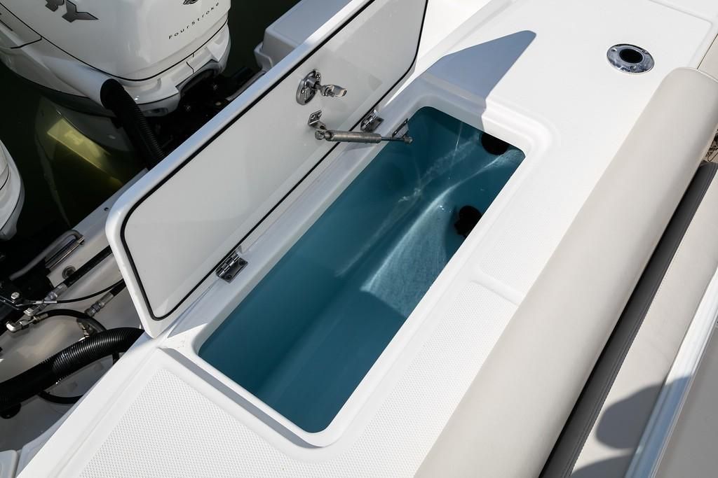 Big, open cockpit with tons of room to fish and a fold-away aft bench for extra space.
